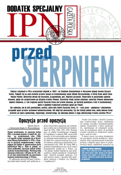Przed Sierpniem - „Niezależna Gazeta Polska”, 3 listopada 2006