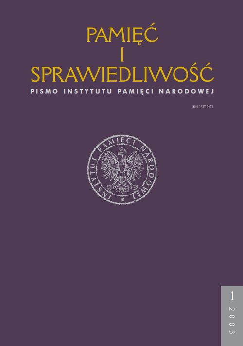 Głównym tematem niniejszego numeru (1/2003) „Pamięci i Sprawiedliwości” jest działalność komunistycznego aparatu bezpieczeństwa. Polscy historycy zaledwie rozpoczynają badania nad tym zagadnieniem. Dopiero bowiem powołanie Instytutu Pamięci Narodowej, jedenaście lat po upadku systemu komunistycznego w Polsce, umożliwiło poddanie szerszej analizie spuścizny archiwalnej Urzędu Bezpieczeństwa i Służby Bezpieczeństwa.