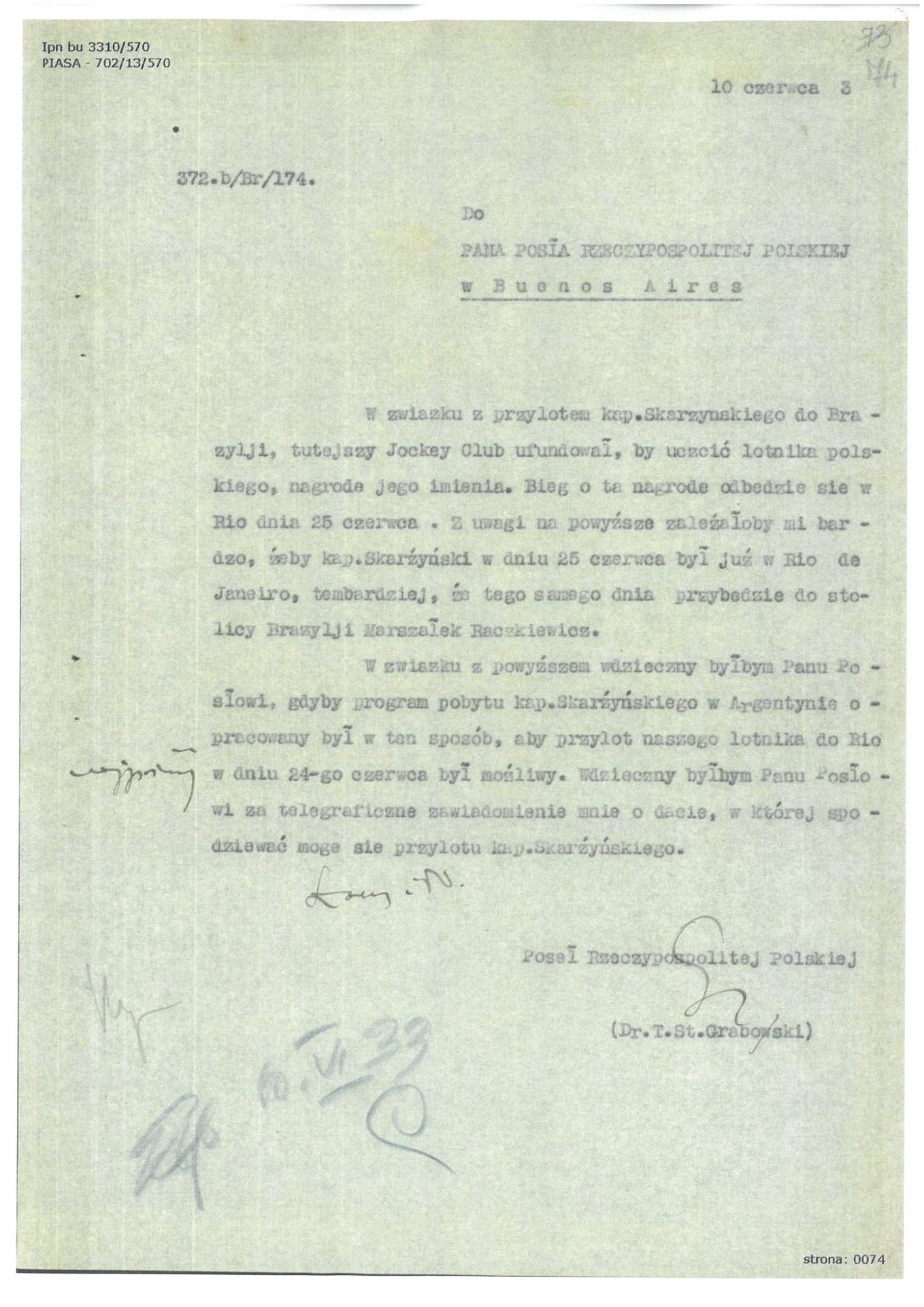 Notatka biograficzna kpt. Skarżyńskiego przygotowana przez Aeroklub Rzeczypospolitej Polskiej (z zasobu AIPN)