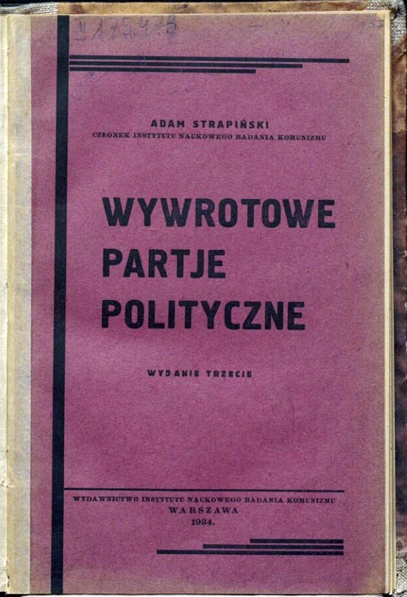 Był autorem m.in. publikacji: „Komunizm”, Warszawa 1926, „KPP i podległe jej organizacje czyli komunistyczne organizacje w Polsce (Podręcznik wyłącznie dla państwowych organów bezpieczeństwa)”, Warszawa 1934 oraz – pod pseudonimem Adam Strapiński – „Wywrotowe partie polityczne”, Warszawa 1933 (wyd. III Warszawa 1934).