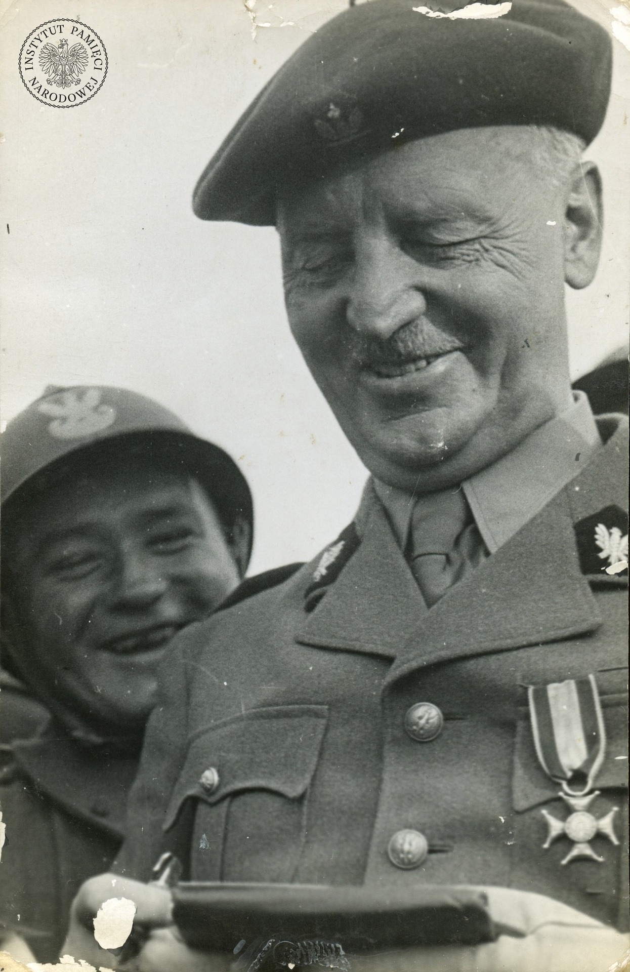 Generał Władysław Sikorski rozdaje autografy żołnierzom Samodzielnej Brygady Strzelców Podhalańskich przed ich odpłynięciem do Norwegii. Zdjęcie jest wykadrowane z szerszego ujęcia fotograficznego. Pochodzi z kolekcji Gabriela Brzęka przekazanej do zasobu IPN przez p. Jadwigę Buczkowską (fot. z zasobu AIPN)