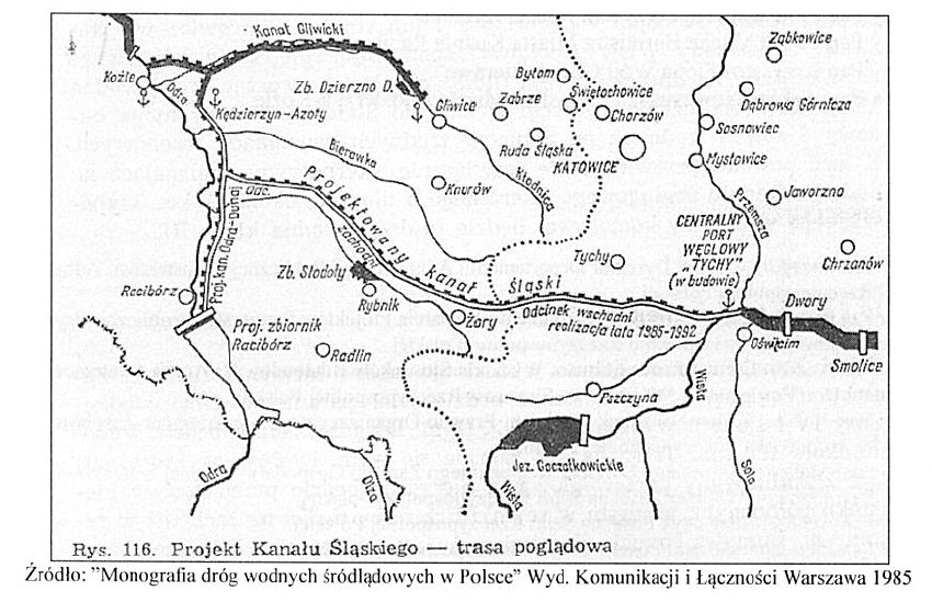 Gierzyński, w swoim reportażu słusznie rwący włosy z głowy nad tym i podobnymi mu absurdami, nie wspomina jednak, że CPW miał być początkiem innej jeszcze drogi wodnej, tym razem prowadzącej wprost na zachód. Mowa o projektowanym Kanale Śląskim, czyli drodze wodnej, która – biegnąc na północ od Żor i Rybnika – łączyć miała się przed Kędzierzynem z planowanym kanałem Odra-Dunaj. Co ciekawe, byłoby to w istocie urzeczywistnienie starych, sięgających jeszcze XIX w. planów niemieckich i austro-węgierskich.