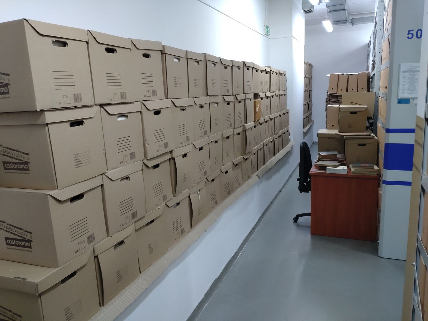 Zbiory płk. Stanisława Dąbrowy-Kostki w magazynach Oddziałowego Archiwum IPN w Krakowie. Fot. Rafał Dyrcz (IPN)