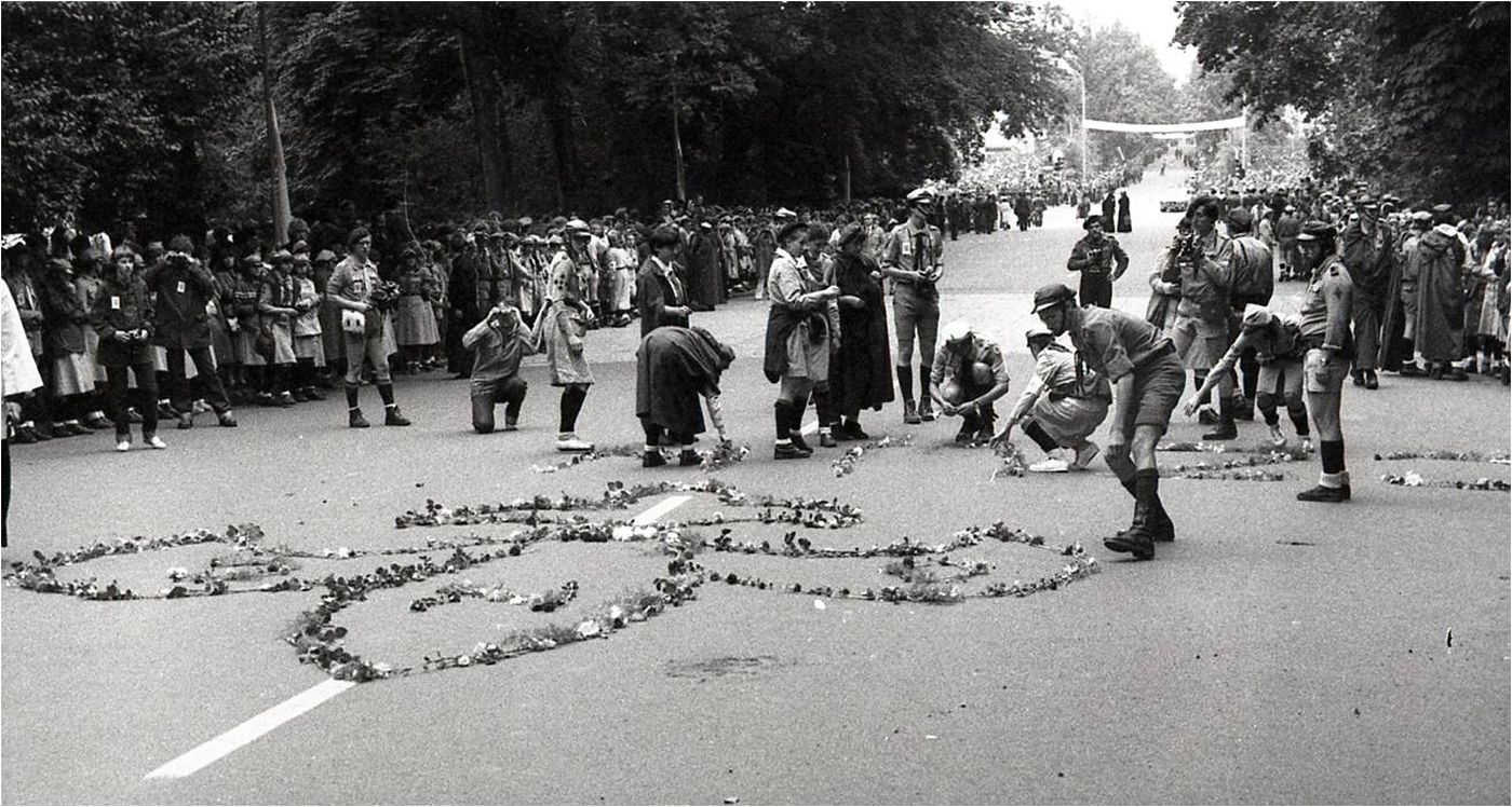 Jakże niezwykły był widok setek harcerzy w mundurach, tworzących szpaler wzdłuż alei, którą na Jasną Górę jechał Ojciec Święty. Na jezdni widniała ułożona, m.in. przez hm. Wiatra, hm. Jerzego Bukowskiego i hm. Wiesławę Stojek, wielka lilijka z kwiatów. Wierni na pewno zapamiętali harcerzy, którzy wielkim wysiłkiem przed napierającym zewsząd tłumem utrzymywali drogę przejazdu dla karetek i ewakuacji do punktów medycznych osób, które zasłabły.