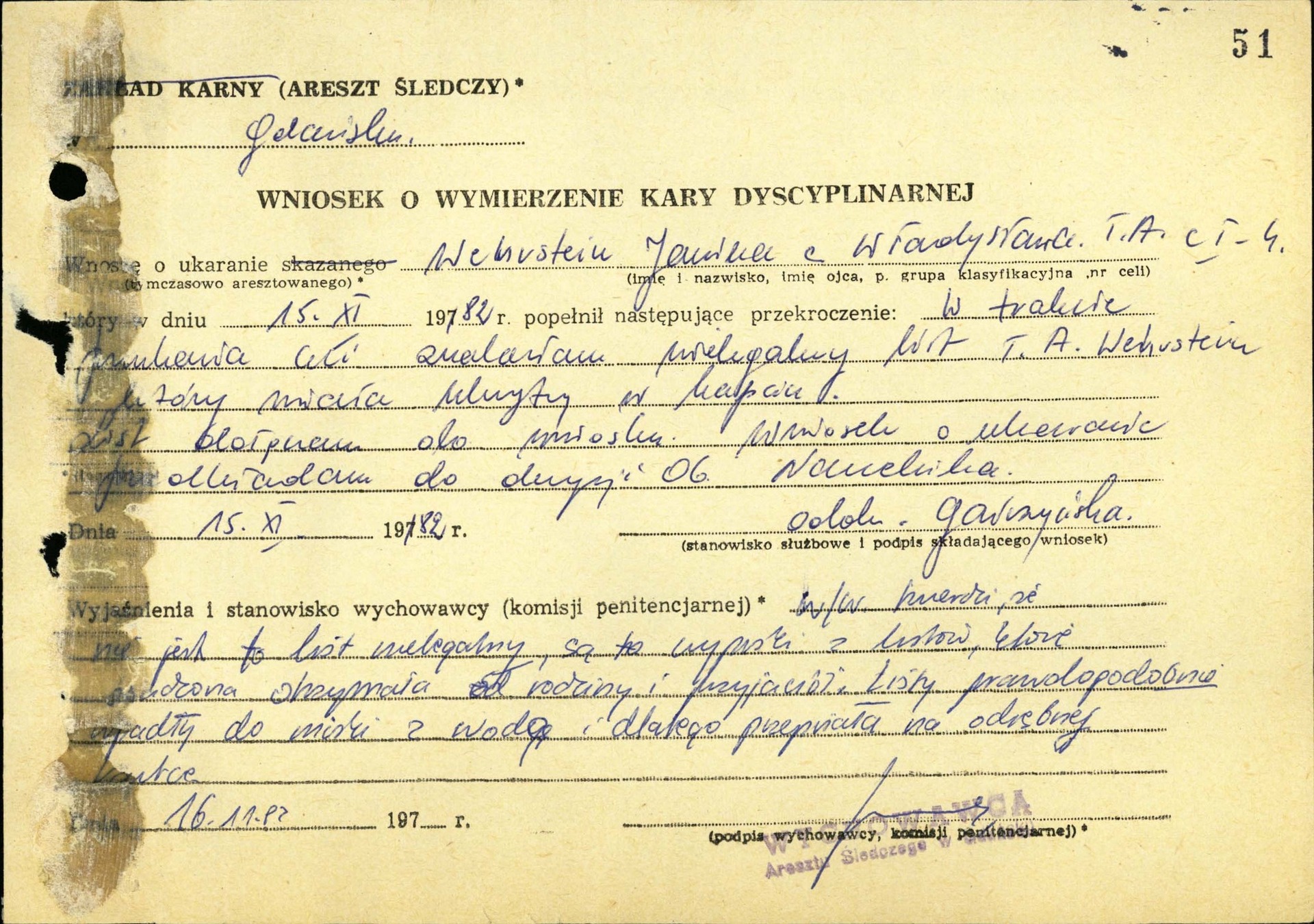 W 1982 r. Wydział Śledczy gdańskiego KWMO wszczął śledztwo przeciwko Janinie Wehrstein oraz Zbigniewowi Jakowczykowi, Wojciechowi Kubińskiemu i Erykowi Zaleskiemu, jako podejrzanym