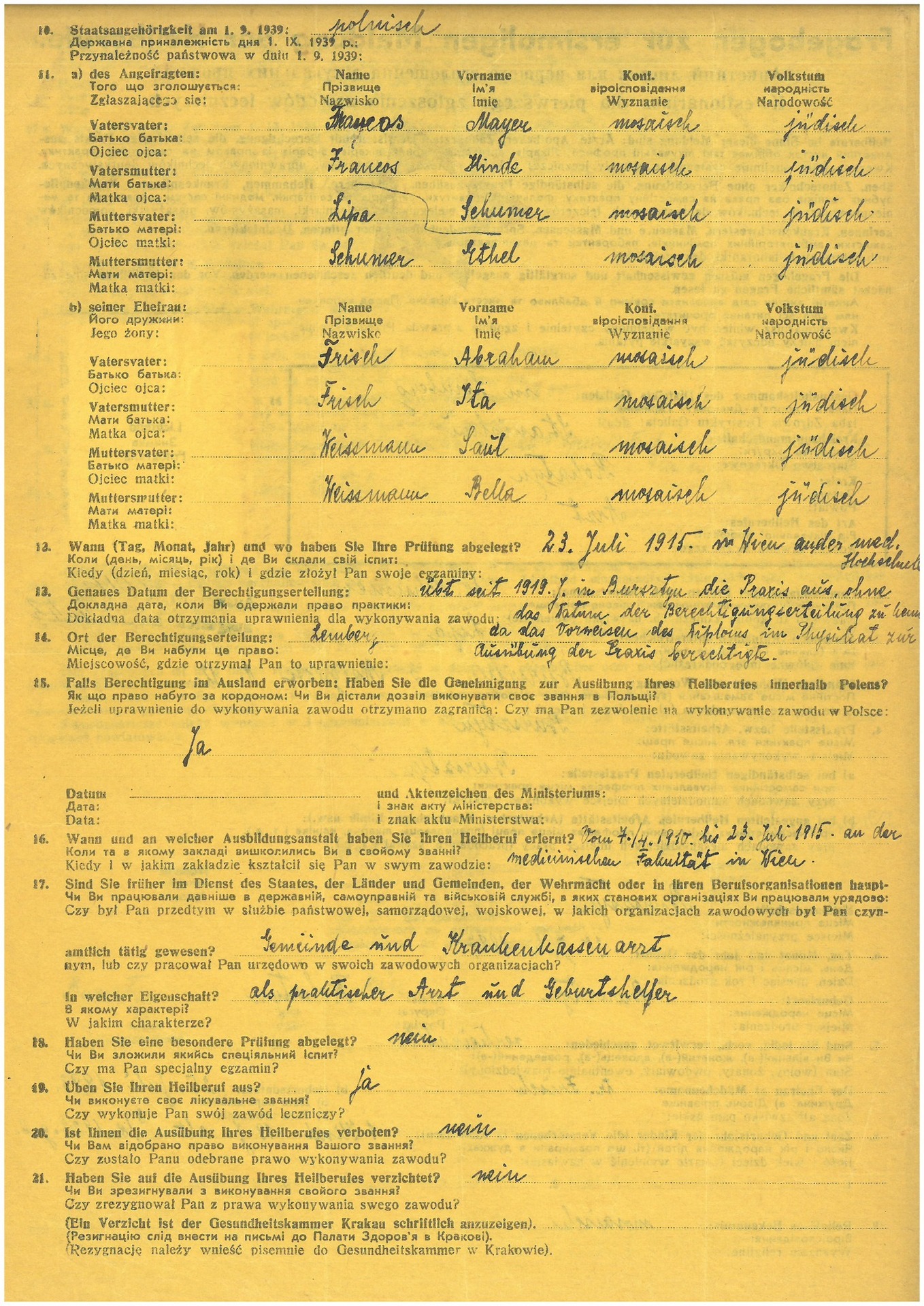 Zachowały się kwestionariusze personalne 226 osób narodowości żydowskiej wykonujących zawody medyczne na terenie Galicji Wschodniej.