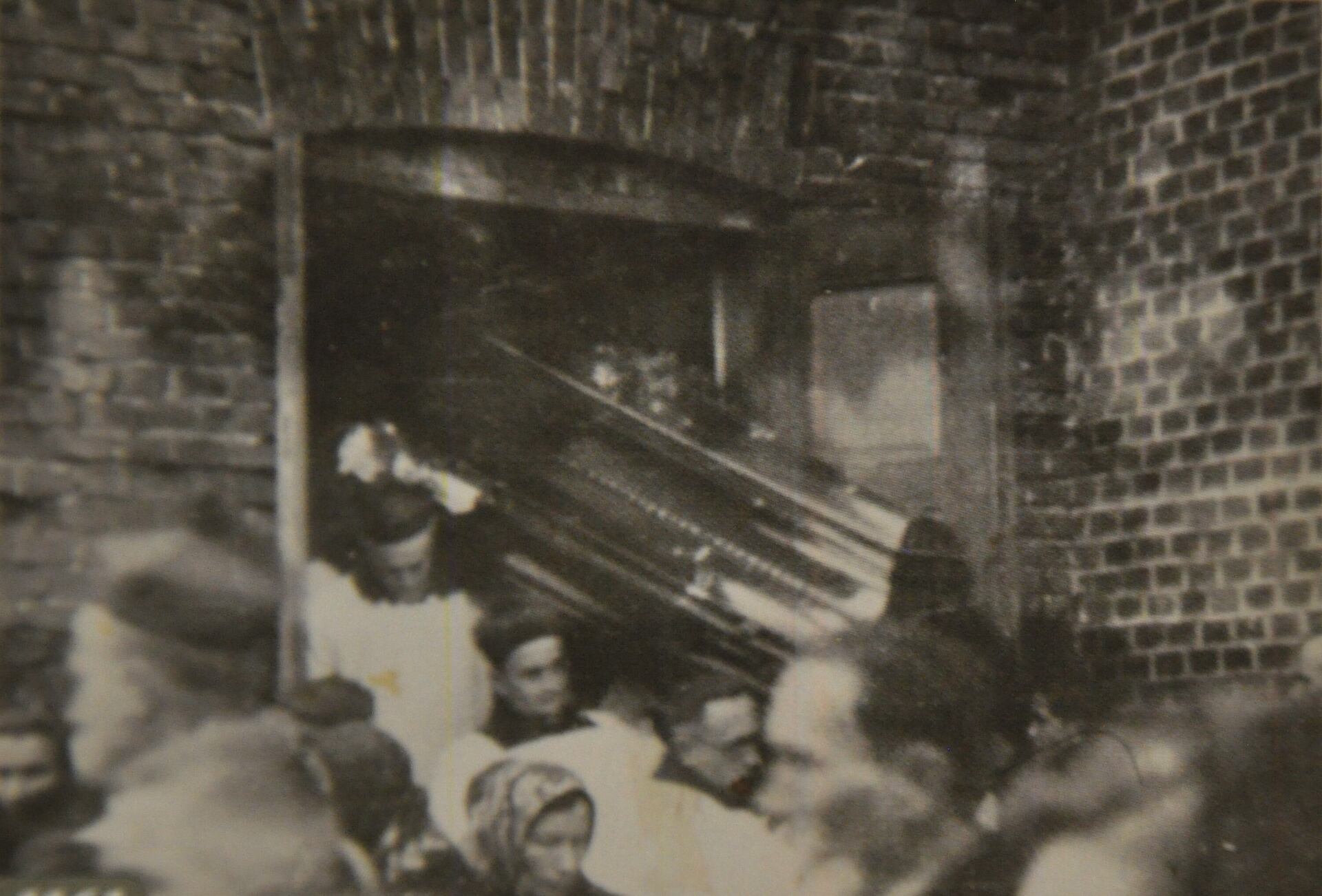 Pogrzeb ks. dr. Franciszka Gołby, Bachowice, 21 I 1944 r. Fotografia ze zbiorów Alojzego Sieprawskiego (Archiwum Gminnej Biblioteki Publicznej w Spytkowicach)