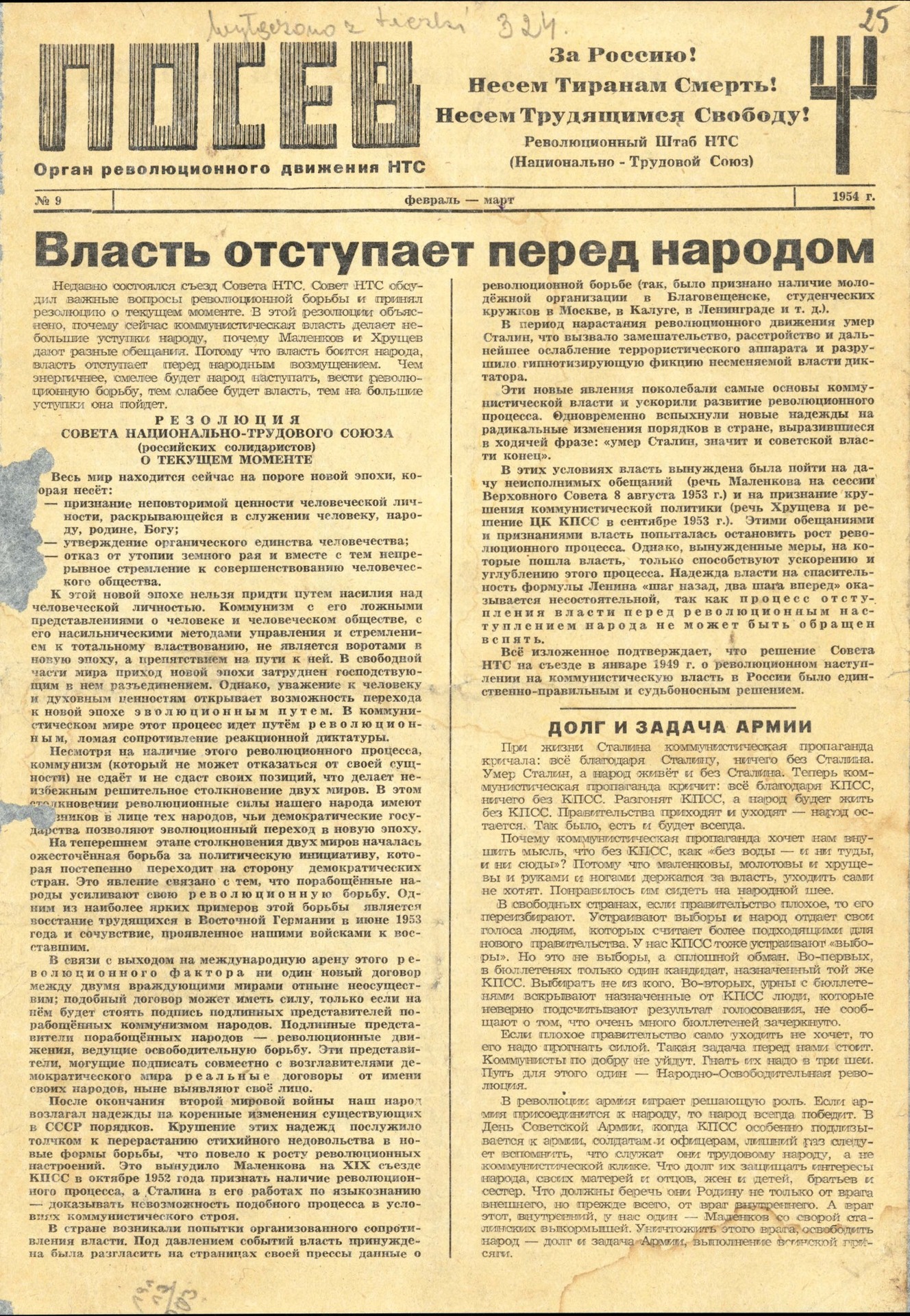 Pierwsza strona rosyjskojęzycznej gazety „Posiew” wydawanej na Zachodzie przez Narodowy Związek Pracujących (z zasobu IPN)