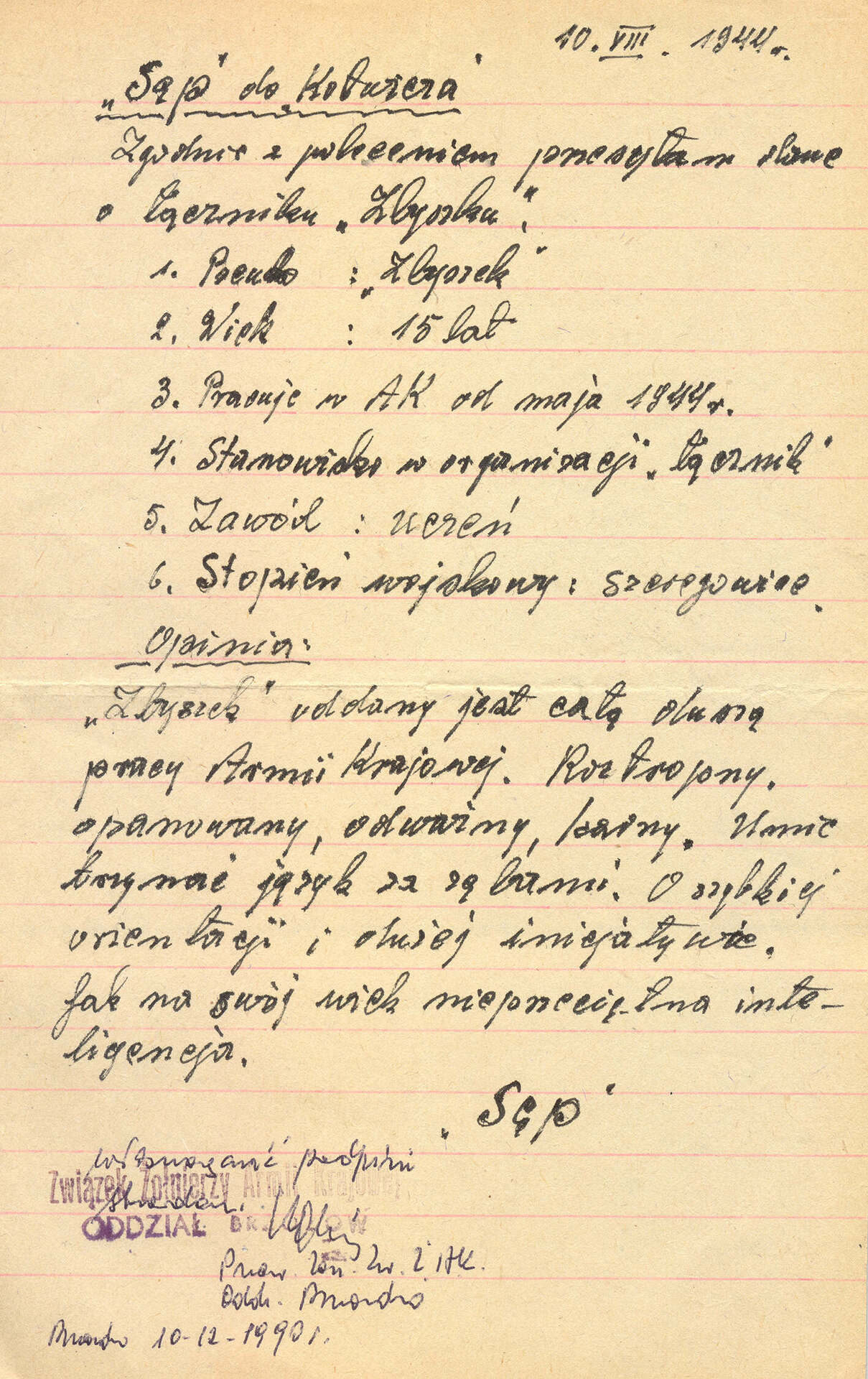 Przyjaciel i kierownik kontrwywiadu brzozowskiego obwodu AK mjr Zygmunt Szczepkowski „Hipolit”, tak go wspominał: