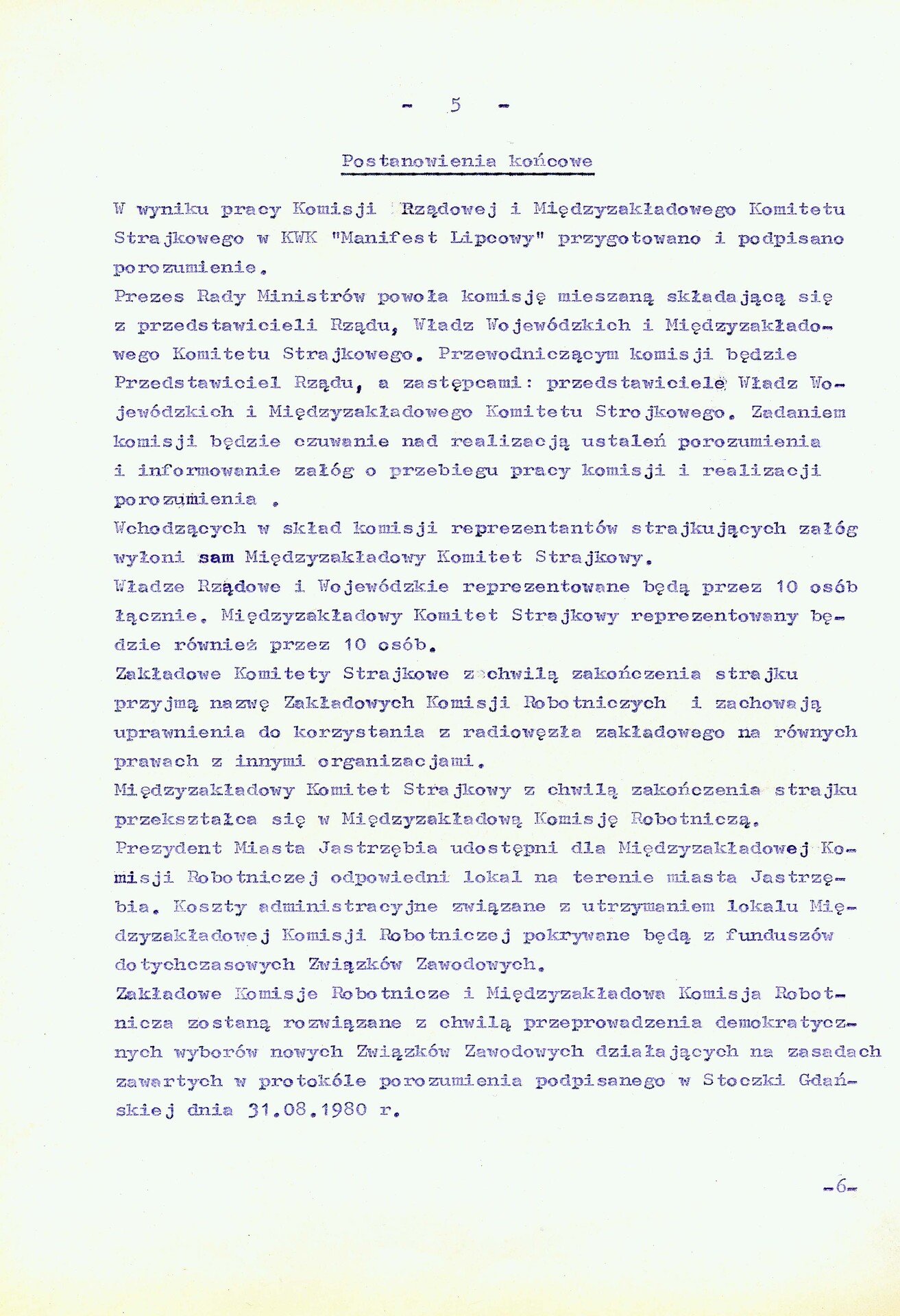 „uprzednio opracowano protokół porozumienia w sprawie sposobu załatwienia postulatów załóg górniczych i uzgodniono wszystkie podstawowe sprawy”.