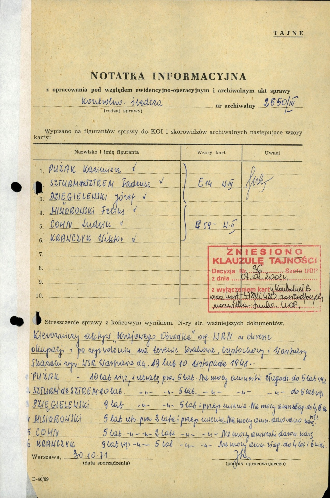 „Skazany w procesie byłych organizatorów i przywódców nielegalnych ugrupowań politycznych i wojskowych działających na zapleczu Armii Czerwonej”.