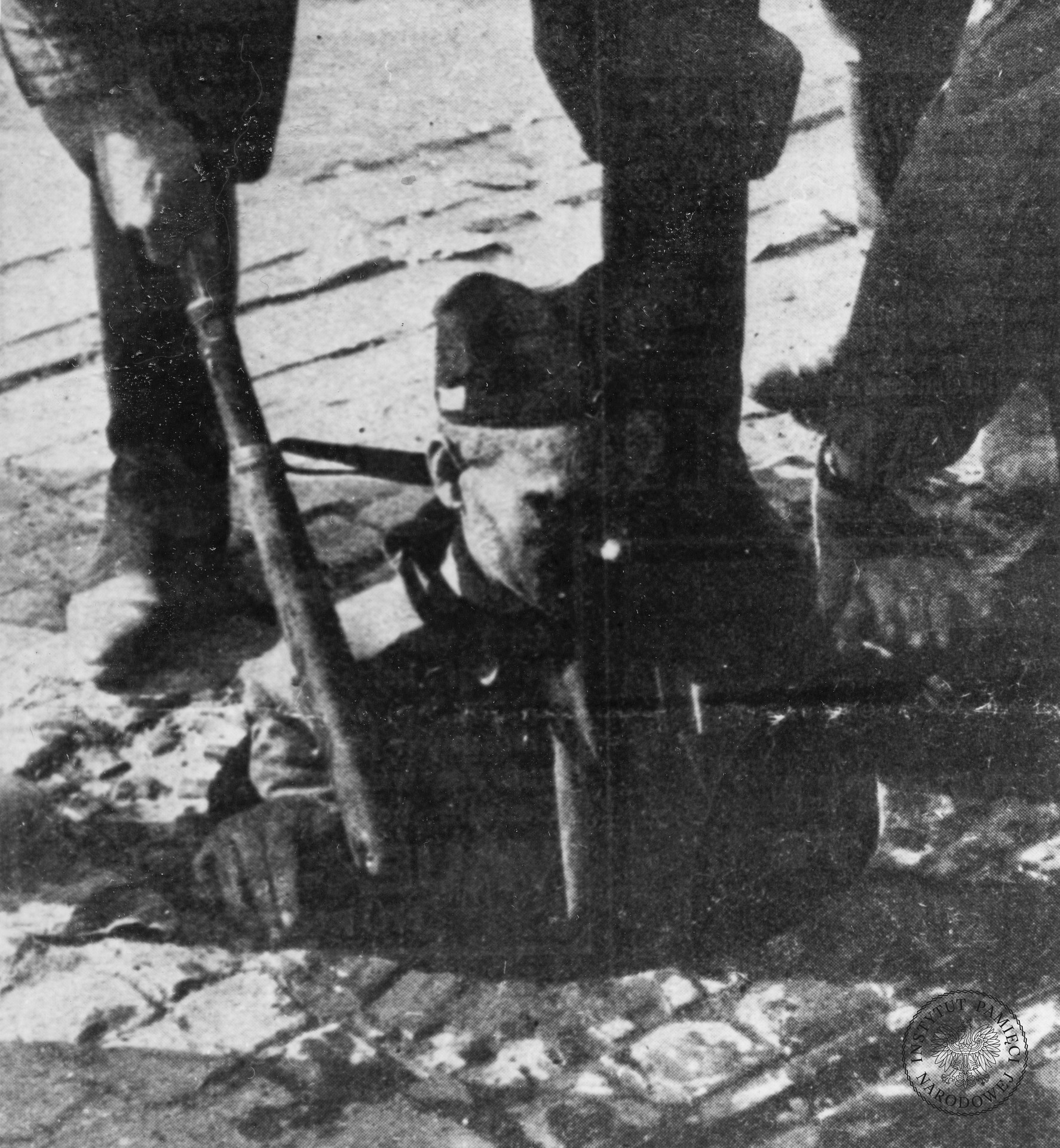 Drugie zdjęcie, wykonane przez Sylwestra Brauna ps. „Kris”, przedstawia moment wychodzenia jednego z powstańców z kanałów. Pokonywanie trasy liczącej jeden kilometr zajmowało walczącym nawet kilka godzin. Drogę pokonywano często w ciemności, po omacku, w fetorze nieczystości, niekiedy (z uwagi na niską wysokość kanału) na kolanach. Wielu nie wytrzymywało trudnych warunków i ginęło. Niestety Niemcy szybko odkryli w jaki sposób powstańcy się przemieszczają i starali się wszelkimi sposobami zlikwidować podziemną łączność. Wrzucali do włazów karbid, granaty lub pompowali benzynę, którą następnie podpalali, a także stawiali zasieki i zapory wewnątrz wejścia do studzienek.