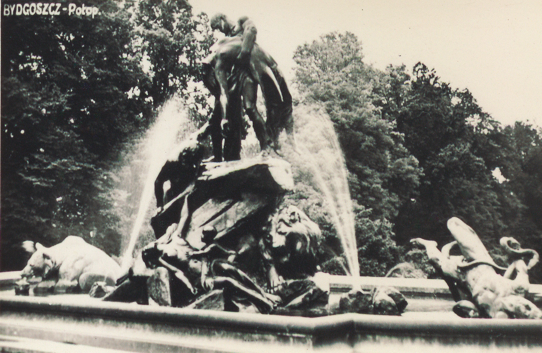 Fontanna „Potop” w Bydgoszczy zniszczona przez Niemców w czasie okupacji. Fot. Wojewódzka i Miejska Biblioteka w Bydgoszczy