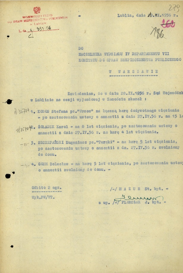 „typem bezwzględnego kontrrewolucjonisty, […] przywódcą kontrrewolucyjnej organizacji AK-WiN i źródłem zła i nienawiści do ustroju socjalistycznego, czyli jednym z najniebezpieczniejszych zbrodniarzy”.