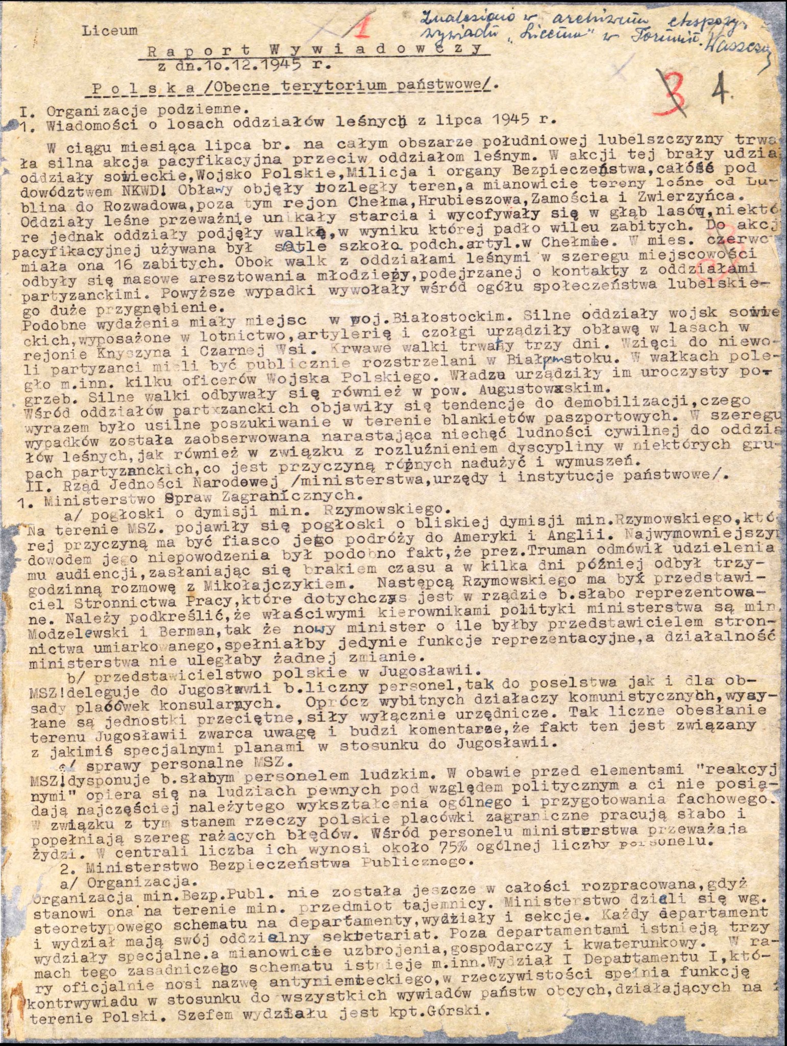 Do dokumentów z archiwum „Liceum” dołączone zostały materiały zarekwirowane przez funkcjonariuszy MBP podczas aresztowania Stanisława Alenowicza i kuriera do Włoch Mieczysława Błaszkiewicza „Koraba”. Całość stanowi bezcenne źródło do poznania dziejów konspiracji poakowskiej.