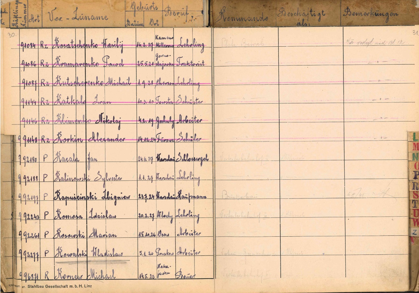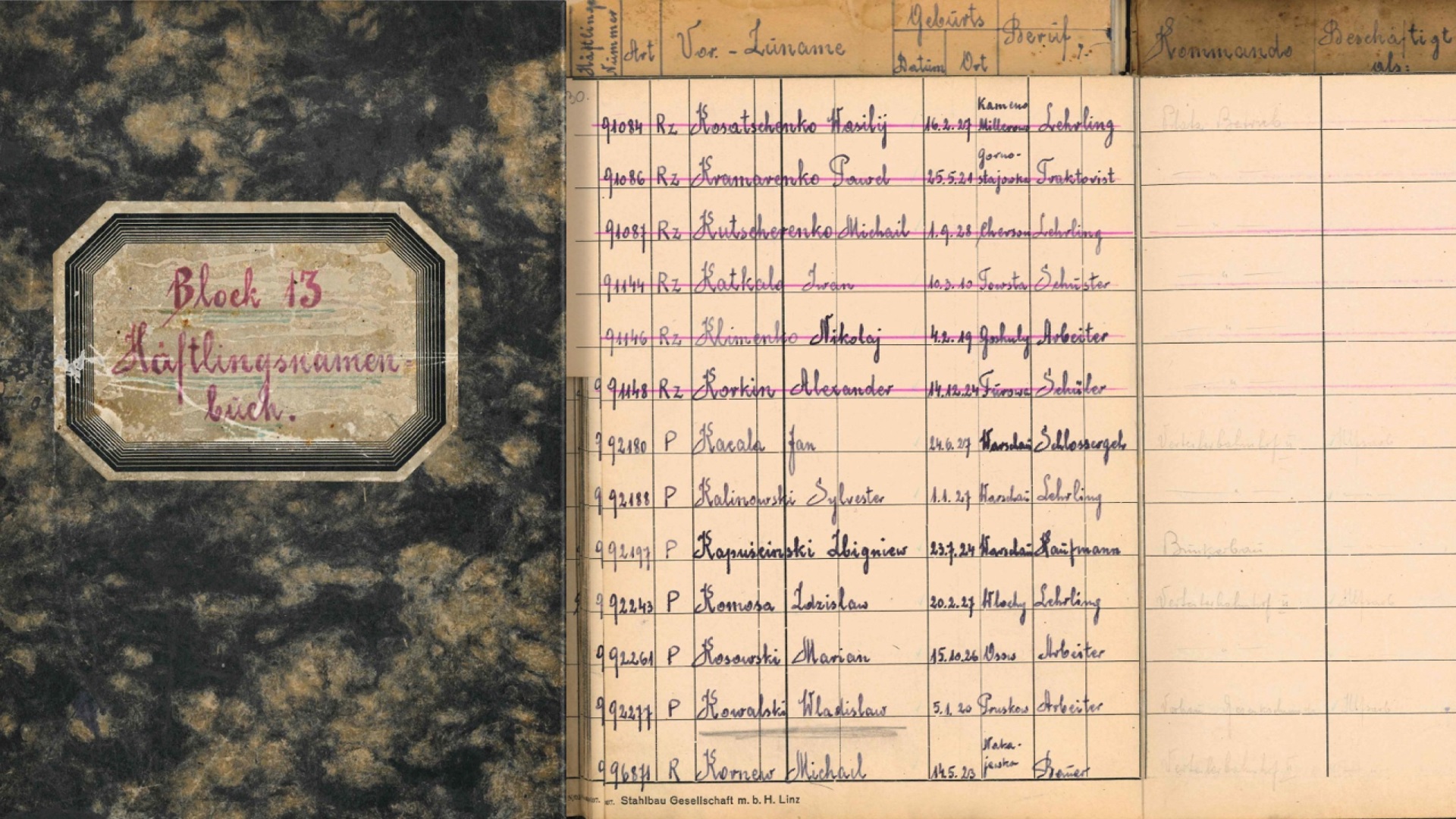 Skorowidz więźniów bloku 13 komanda zewnętrznego Linz III (materiały z zasobu AIPN)