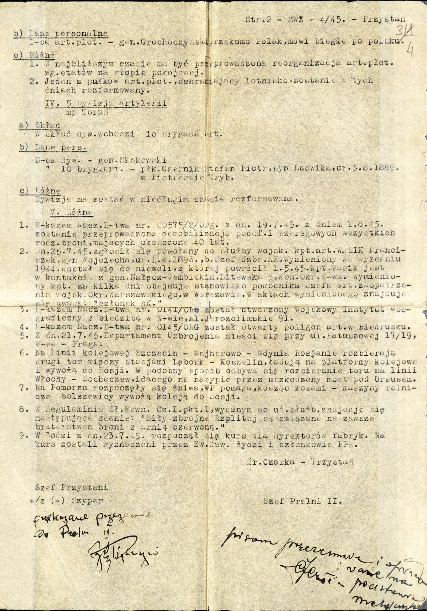 Tymczasem „Pralnia II” po reorganizacji i podporządkowaniu Sztabowi 2. Korpusu Polskiego funkcjonowała pod krypt. „Port”, a po aresztowaniu Żuka – pod krypt. „Liceum” z kpt. Barbarą Sadowską na czele. W ramach zorganizowanej komórki kontrwywiadowczej krypt. „Cyrk”, kierowanej przez por. Stanisława Karolkiewicza „Rylskiego”, prowadzono akcję „Ż” za pośrednictwem informatora z Departamentu Personalnego MON – kpt. Zygmunta Grodzkiego. Przekazał on m.in. imienny wykaz pracowników departamentu z zakresami działania poszczególnych wydziałów, schemat Sztabu Generalnego, informacje o dyslokacji jednostek wojskowych na terenie Warszawy oraz legitymacje oficerskie, książeczki wojskowe, karty urlopowe i rozkazy wyjazdów in blanco.