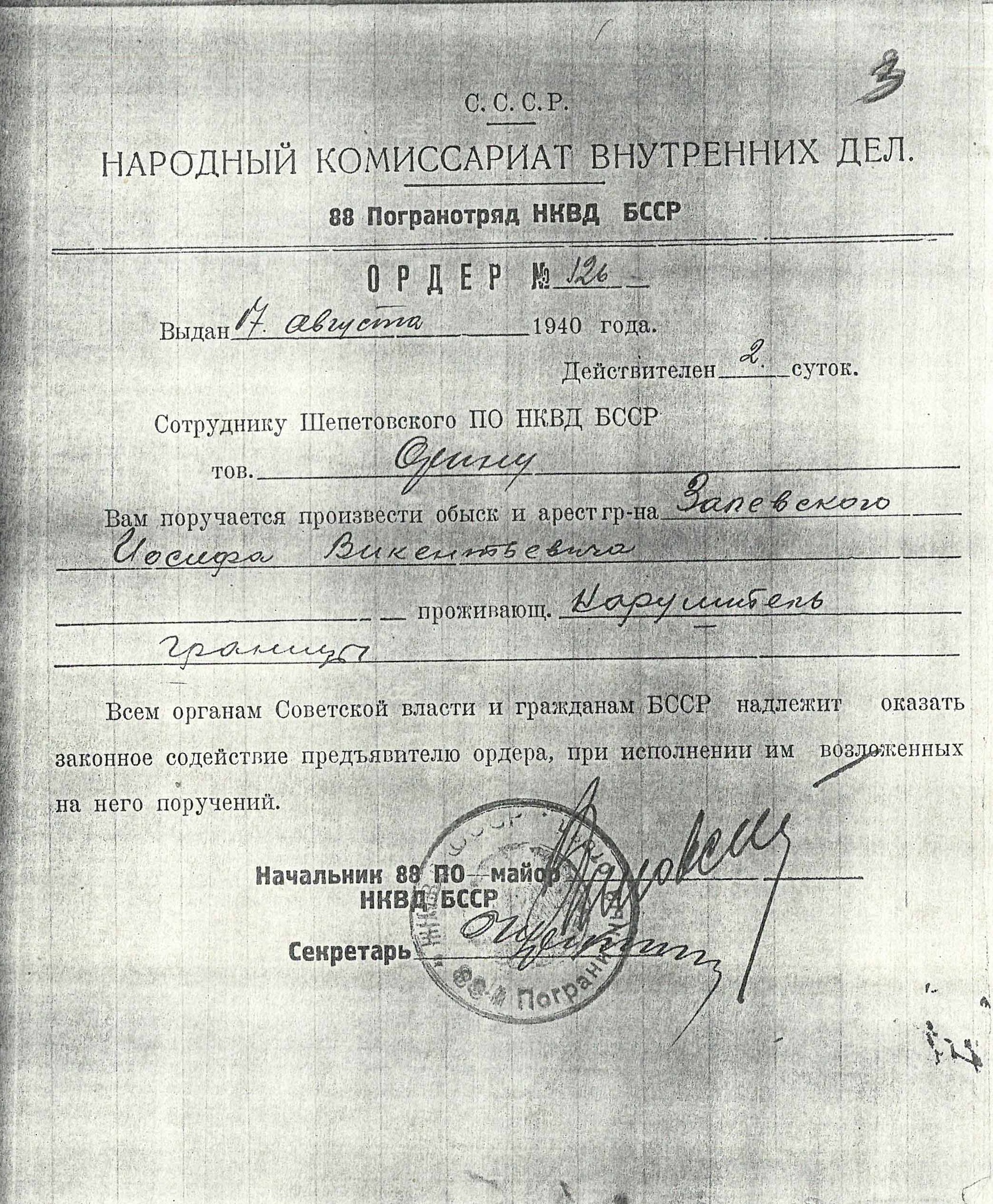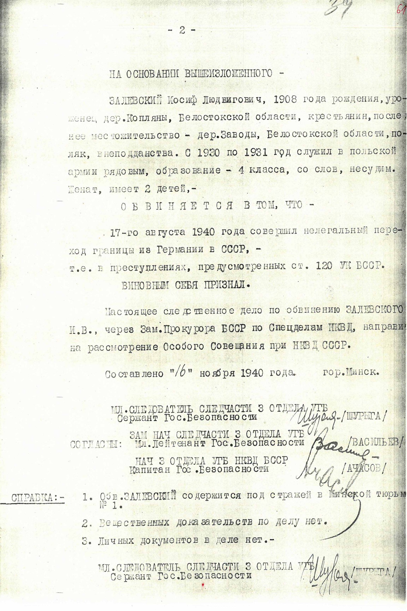Jedną z osób aresztowanych za „nielegalne przekroczenie granicy” z Niemiec do ZSRS był Józef Zalewski (ur. 1908 r.).