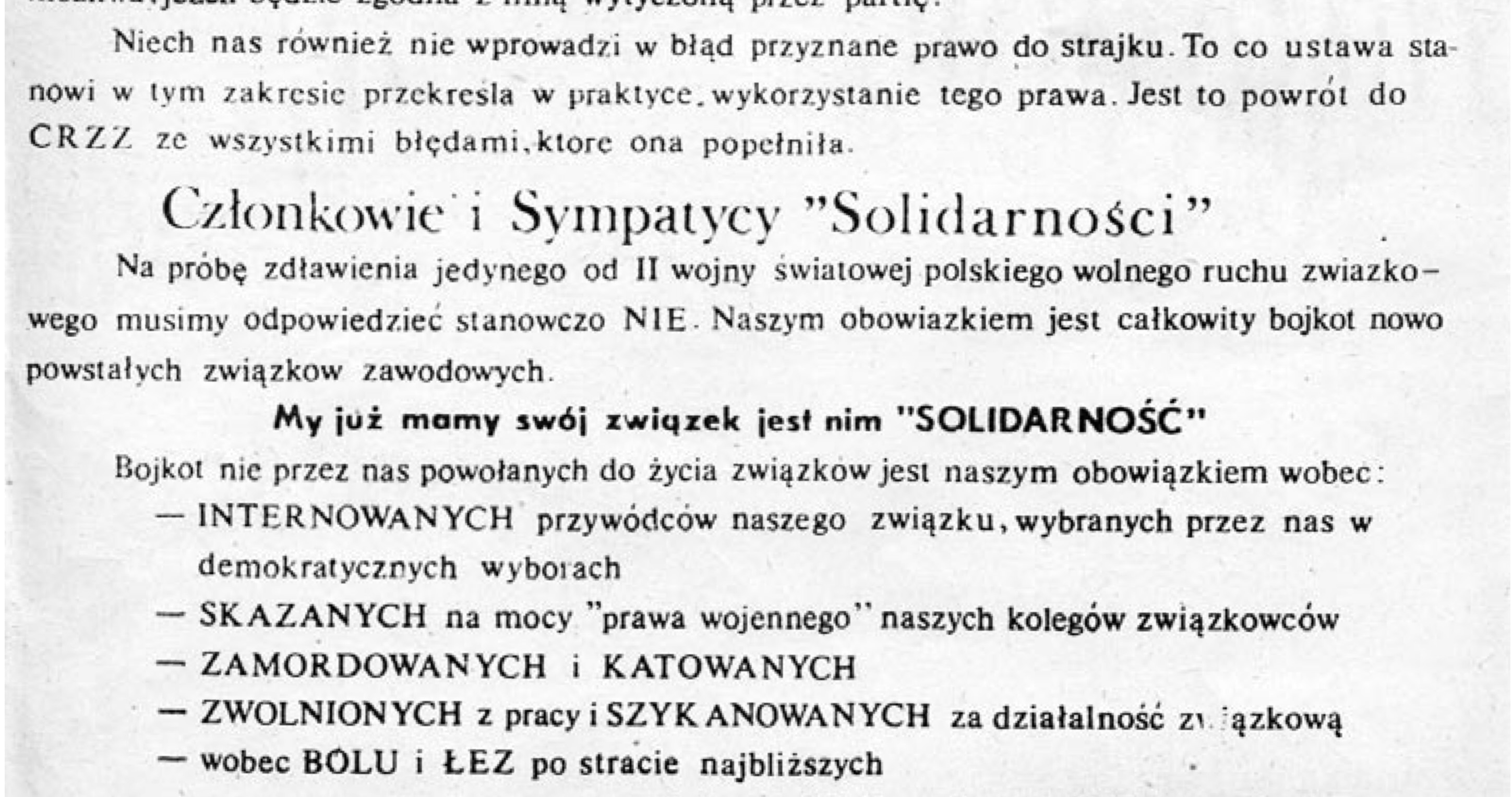 „zarysowała się charakterystyczna różnica: niepodpisywanie było zgodne z etosem inteligenckim, natomiast niektórzy działacze robotniczy mieli kryteria inne: Podpisałem, a co mi tam! I tak, jak wyjdę, będę robił swoje”,