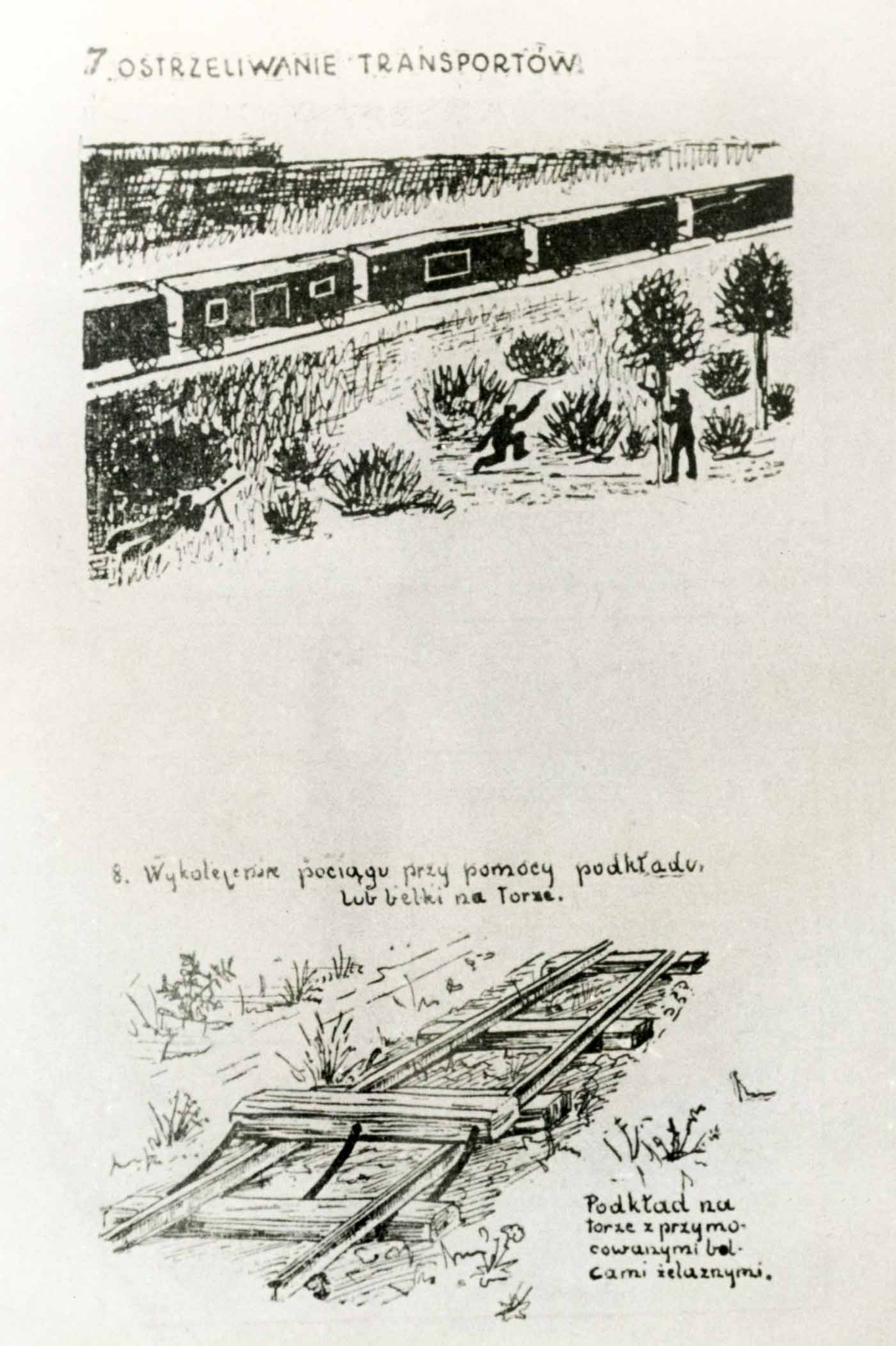 Fotokopia jednej ze stron materiałów szkoleniowych do prowadzenia akcji sabotażowych i dywersyjnych, opracowanych przez polskie struktury konspiracyjne i przejętych przez okupacyjne niemieckie tajne służby policyjne. Materiały pochodzą z zespołu: „Der Kommandeur der Sicherheitspolizei und des SD für den Distrikt Radom” [Komendant Policji Bezpieczeństwa i Służby Bezpieczeństwa dla Dystryktu Radomskiego], przechowywanego w zasobie Archiwum IPN w Warszawie