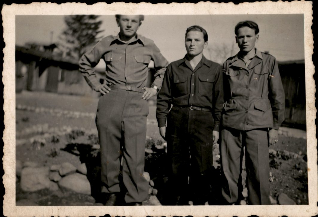 Jan Korytko (w środku) z kolegami w okresie służby w kompanii wartowniczej, Schongau (Bawaria), 1946 r.