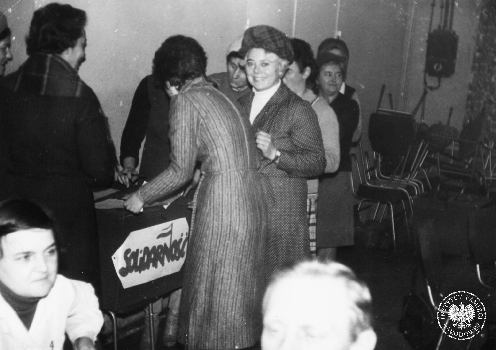 Zebranie członków „Solidarności” w Zakładach Porcelany „Ćmielów”. Głosowanie. Prawdopodobnie grudzień-styczeń 1980/1981 (fot. z zasobu IPN)
