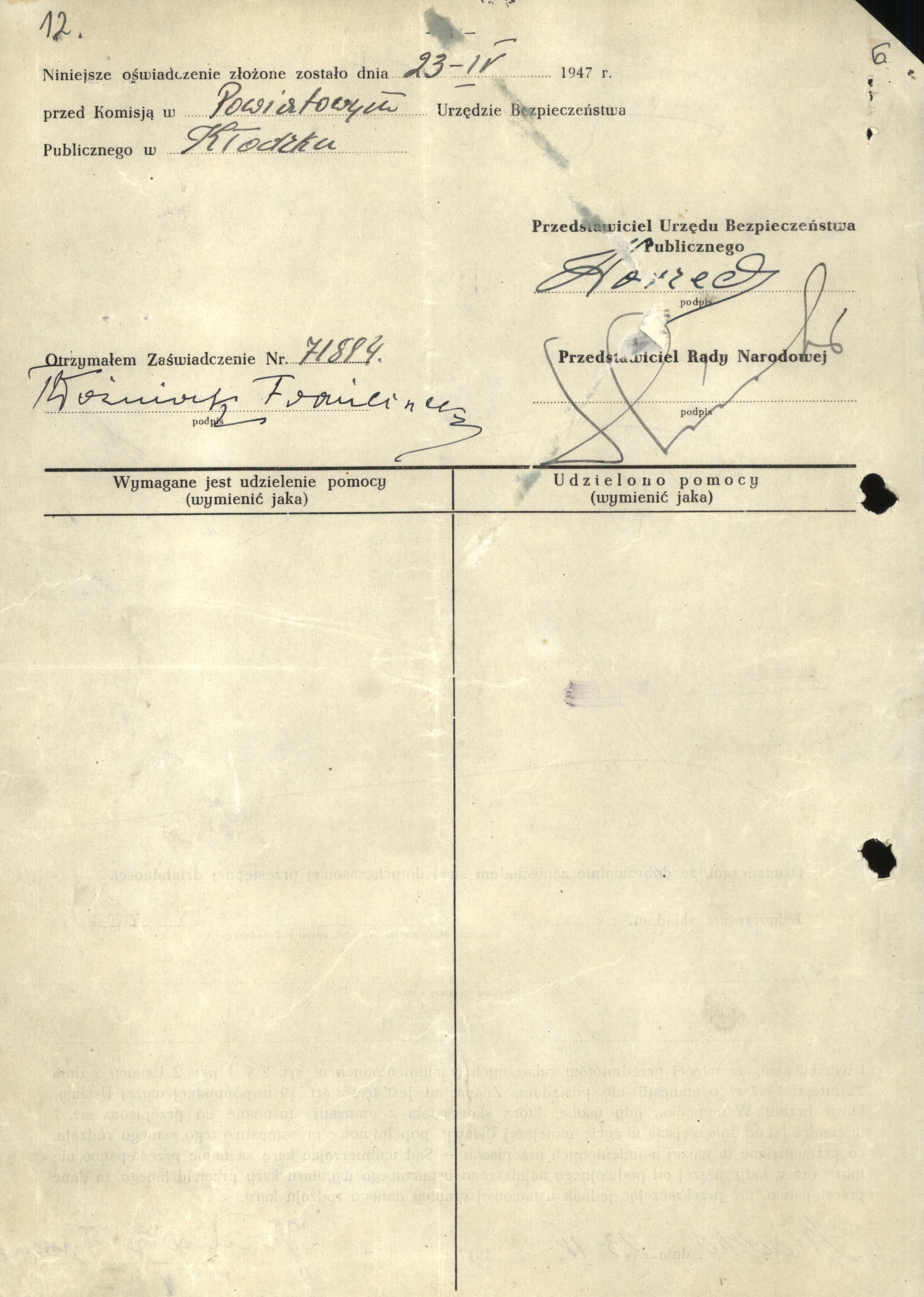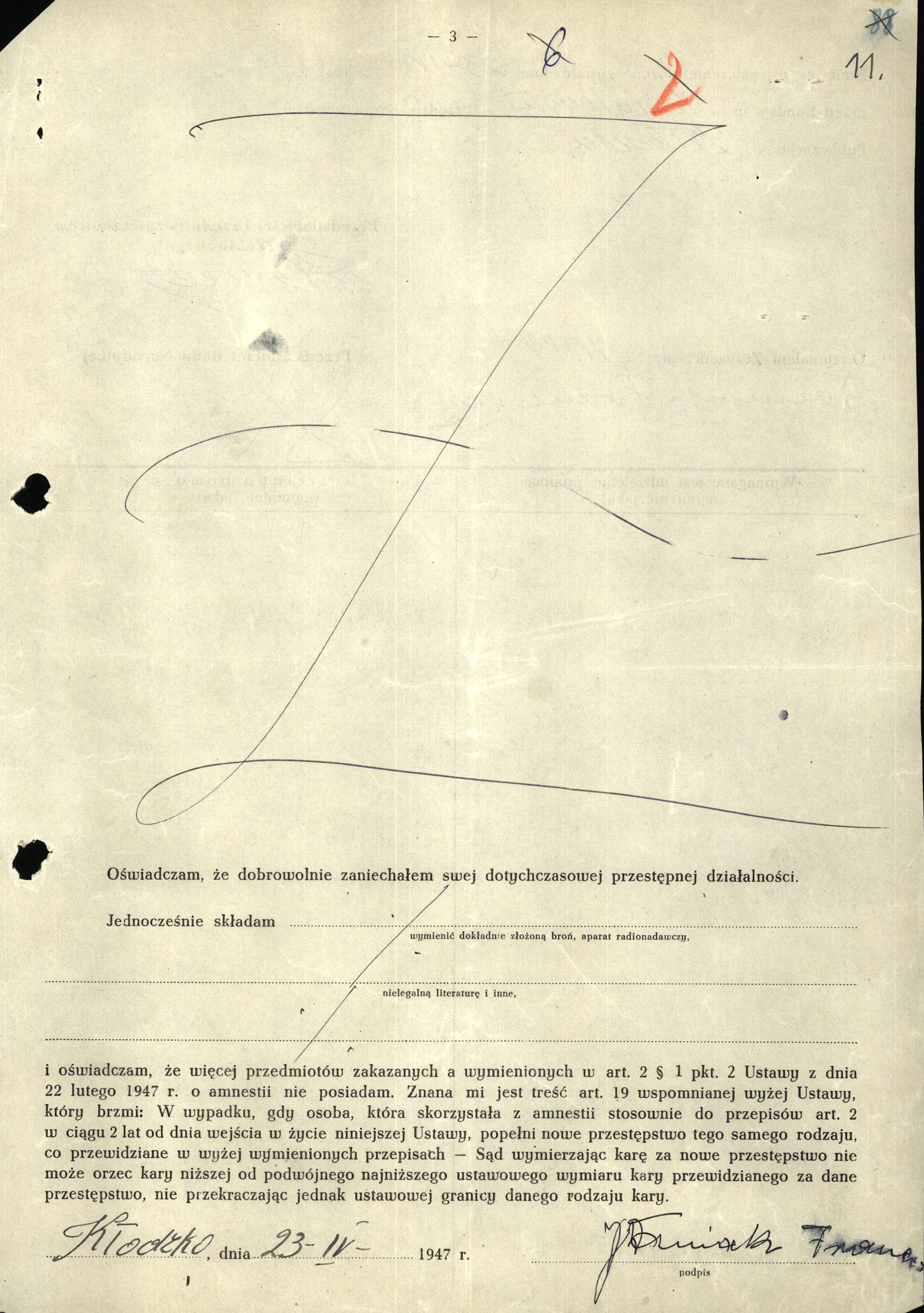Pojawił się nagle i tak samo niepostrzeżenie rozpłynął się w mrokach historii powojennej komunistycznej Polski. Nigdy nie został ujęty przez UB, choć niewiele brakło, aby tak się stało. W archiwum IPN zachował się tylko jeden dokument napisany własnoręcznie przez niego i jego fotografia. Tym dokumentem jest oświadczenie o ujawnieniu podczas tzw. prowokacyjnej amnestii, złożone przez niego osobiście w Powiatowym Urzędzie Bezpieczeństwa Publicznego w Kłodzku w dniu 23 kwietnia 1947 r.