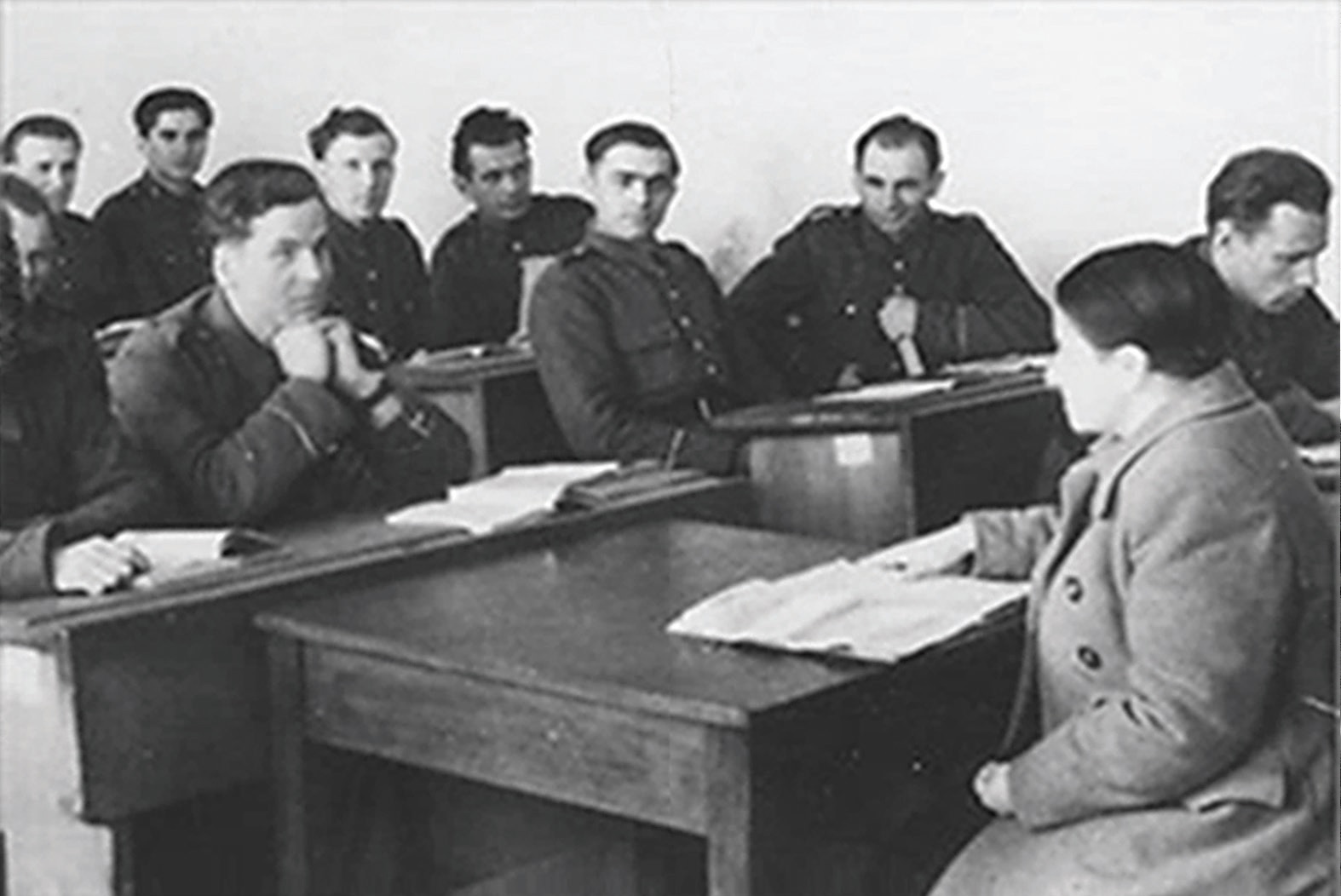 a później „egzamin z geografii politycznej” oraz „egzaminy wstępne z przedmiotów ogólnopolitycznych, a ściślej z wiadomości o Polsce i świecie współczesnym”. Dopełniała je rozmowa z komisją o „sytuacji rodzinnej i zainteresowaniach”. We wspomnieniach funkcjonariuszy UB często powracały stwierdzenia, że większość kursantów – co odpowiadało statystykom w resorcie – była słabo wykształcona. Czytanie i pisanie sprawiało niektórym trudność. Także nauka szła początkowo słabo, ale wtłoczenie kadetów w rytm pracy i przyuczanie do nauki własnej w grupach – po zakończeniu zajęć, jak się wydaje, przynosiło efekty.
