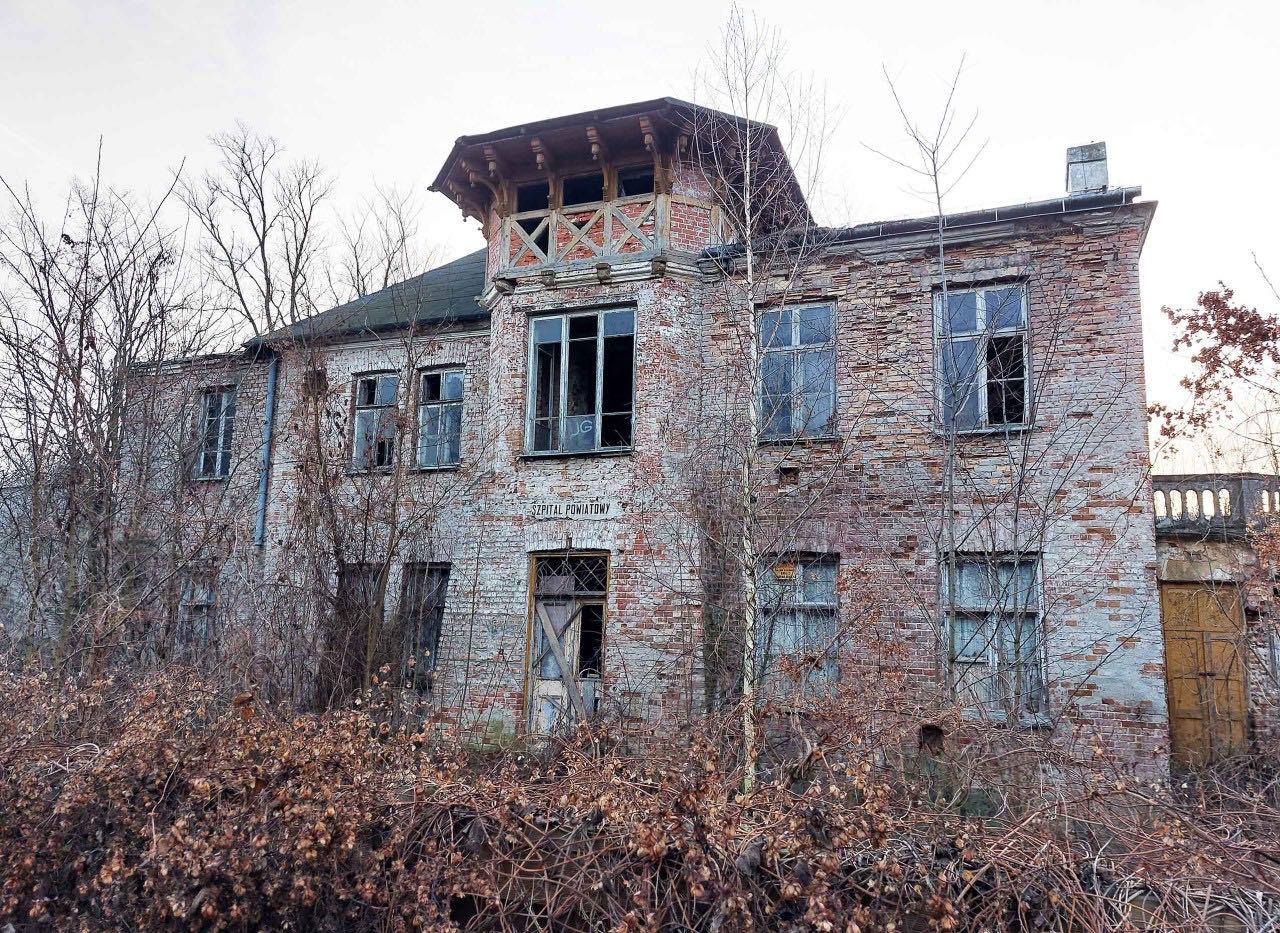 Ruiny szpitala powiatowego w Grodzisku Mazowieckim. W tym budynku 3 stycznia 1945 r. zmarł Ferdynand Ossendowski, 2024. Fot. P. Zielony