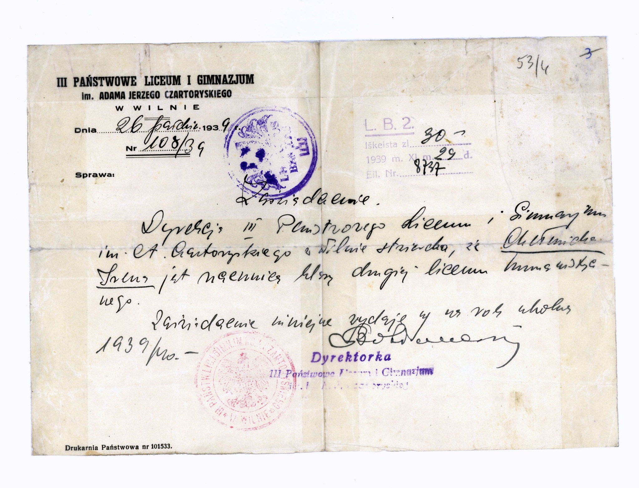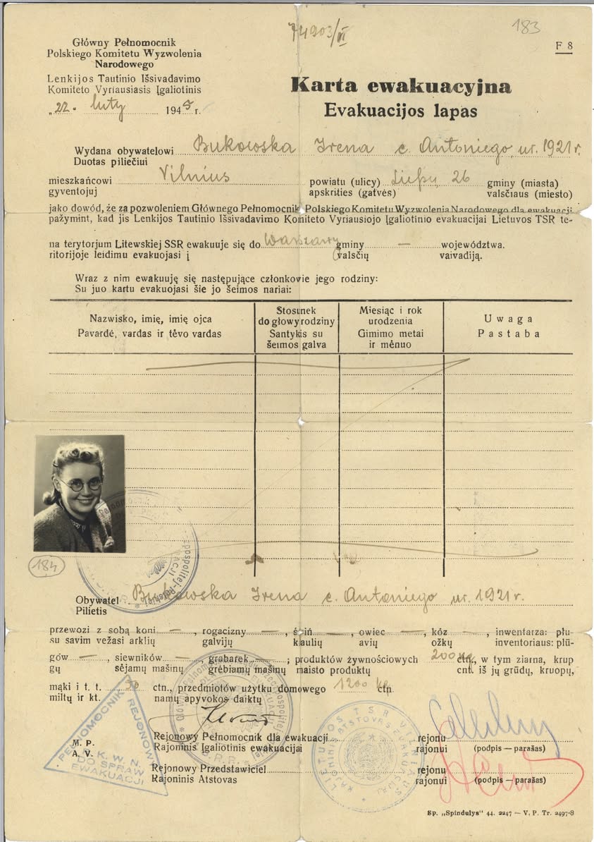 W 1939 r. Wilno zostało przekazane Litwinom, którzy zapowiedzieli szeroką „reorganizację” szkolnictwa i rozpoczęli usuwanie polskiej kadry pedagogicznej. W związku z tymi represjami uczniowie zorganizowali strajk szkolny, w którym wzięła udział także Irena. Po jego zakończeniu rozpoczęła ona naukę na tajnych kompletach, na których wiosną 1940 r. zdała egzamin dojrzałości. Trudne warunki materialne wymusiły na Irenie przerwanie nauki i podjęcie pracy fizycznej, m.in. zajmowała się odszlamianiem stawów.