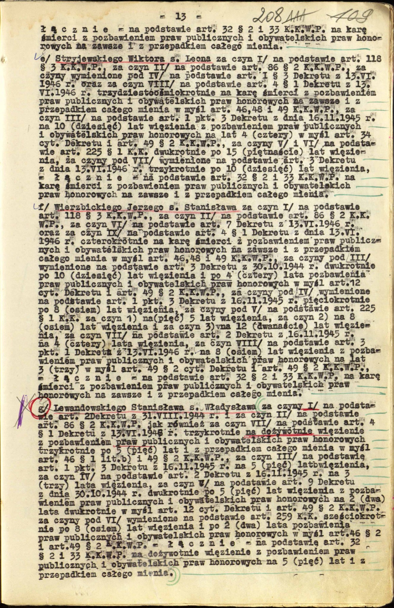 „[…] na terenie powiatów Płock, Sierpc i Rypin z początku jako członek, a potem jako komendant zbrojnej bojówki N.S.Z. podporządkowanej 11 grupie operacyjnej 23 Okręgu N.S.Z. usiłował przemocą zmienić ustrój Państwa Polskiego”.