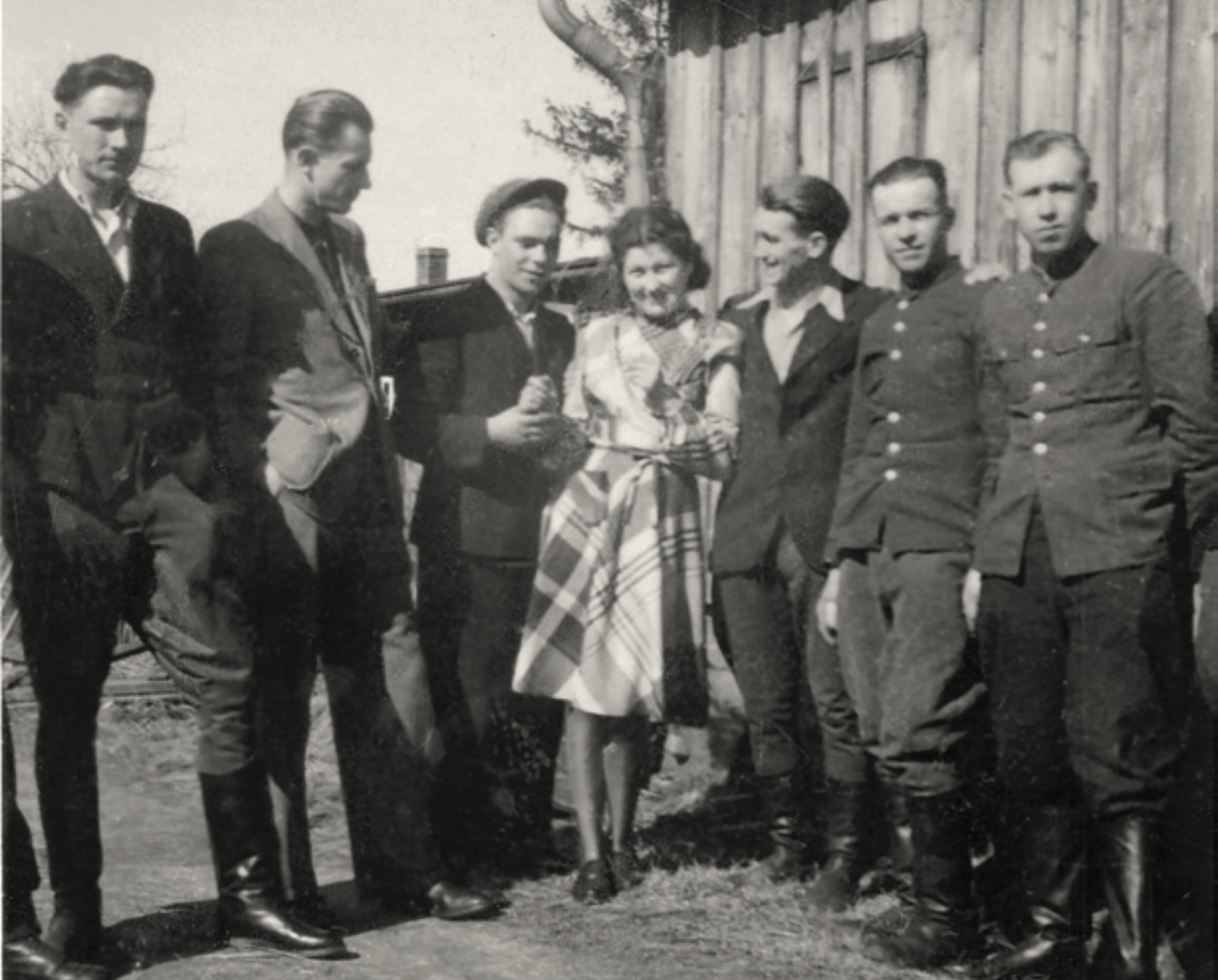 Żołnierze z oddziału BOA i 5 Brygady Wileńskiej AK przed wspólną akcją w Koszalinie; trzeci z prawej Zdzisław Badocha „Żelazny”, 1946 r. (fot. z zasobu IPN)