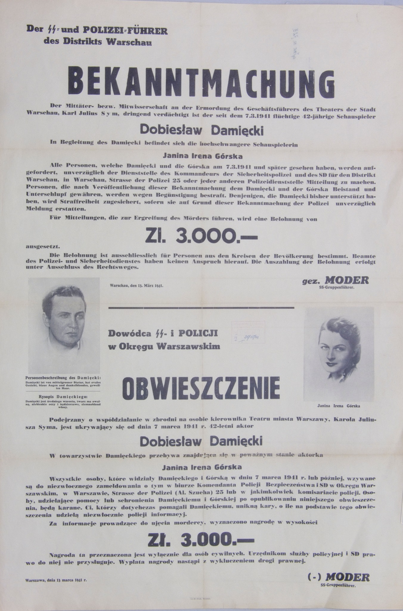 „W październiku zgłosił się jako tłumacz. Obecnie pracuje w Reichsprp., przemawiał przy otwieraniu kin. Wyraźnych dowodów współpracy z g-o [gestapo – aut.] nie ma”