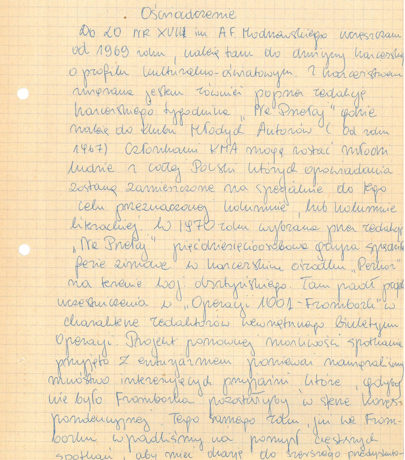 Oświadczenie Darii Trafankowskiej. Dokument z akt sprawy operacyjnego sprawdzenia krypt. „Dom” (z zasobu IPN)