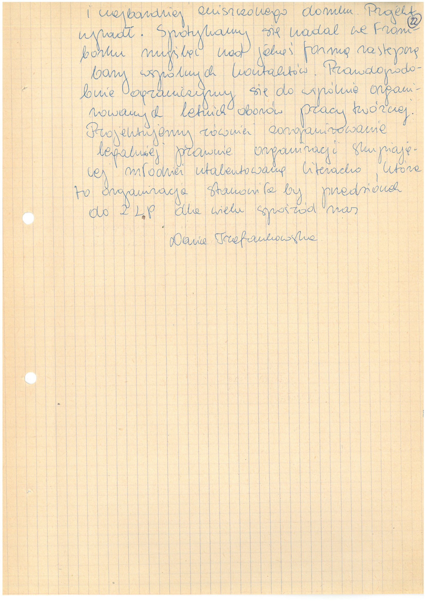 Daria Trafankowska w czasie nauki w liceum im. Andrzeja Frycza-Modrzewskiego w Warszawie była członkinią drużyny harcerskiej, współpracującej z tygodnikiem „Na Przełaj”, w ramach którego działał Klub Młodych Autorów. Redakcja gazety wybrała kilkudziesięcioosobową grupę uzdolnionych twórców i zaprosiła do spędzenia ferii zimowych w harcerskim ośrodku „Perkoz” na Mazurach.