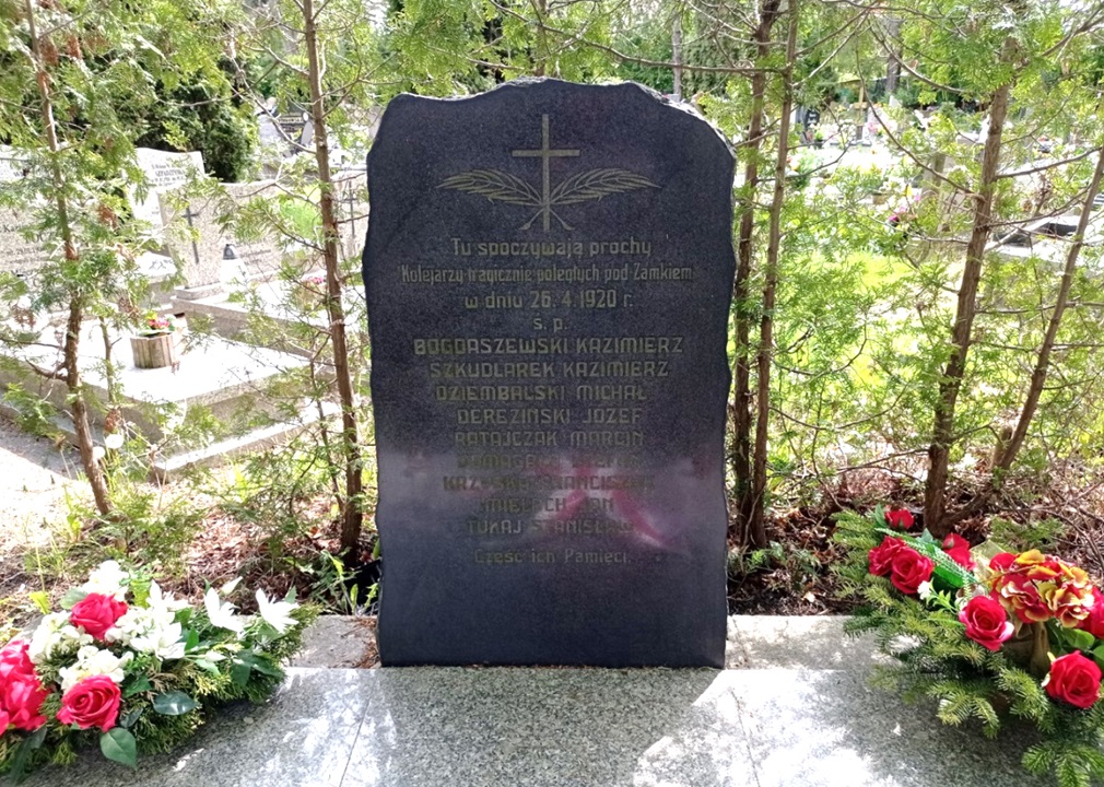 „W walce przeciw zdradzieckiej, antynarodowej polityce rządów burżuazyjno-obszarniczych w dniu 26 kwietnia 1920 r. przed zamkiem w Poznaniu w czasie manifestacji przeciw napaści wojennej na Związek Radziecki i dekretom głodowym reakcji, padło 9-ciu robotników kolejowych: Kazimierz Bogdaszewski, Józef Dereziński, Stefan Domagała, Michał Dziembalski, Franciszek Krzyśko, Jan Mieloch, Marcin Ratajczak, Kazimierz Szkudlarek, Stanisław Tukaj. Cześć poległym w walce o pokój i prawa ludu pracującego, synom poznańskiej klasy robotniczej”.