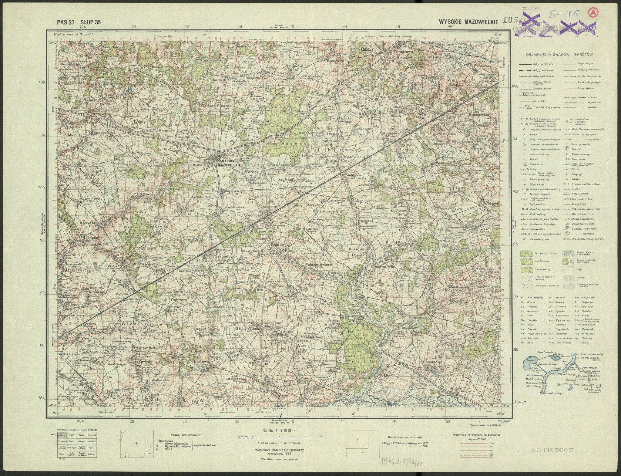 Okolice Wysokiego Mazowieckiego, Dąbrowy-Łazów, Szepietowa i Dąbrowy-Moczydeł – teren, na którym 30 kwietnia 1945 r. starł się oddział podziemia antykomunistycznego z pacyfikacyjną grupą NKWD. Mapa topograficzna Wysokie Mazowieckie Pas 37 Słup 35, arkusz tzw. serii: Mapa taktyczna 1:100 000 WIG. Warszawa, Wojskowy Instytut Geograficzny, 1935 (ze zbiorów Biblioteki Narodowej)