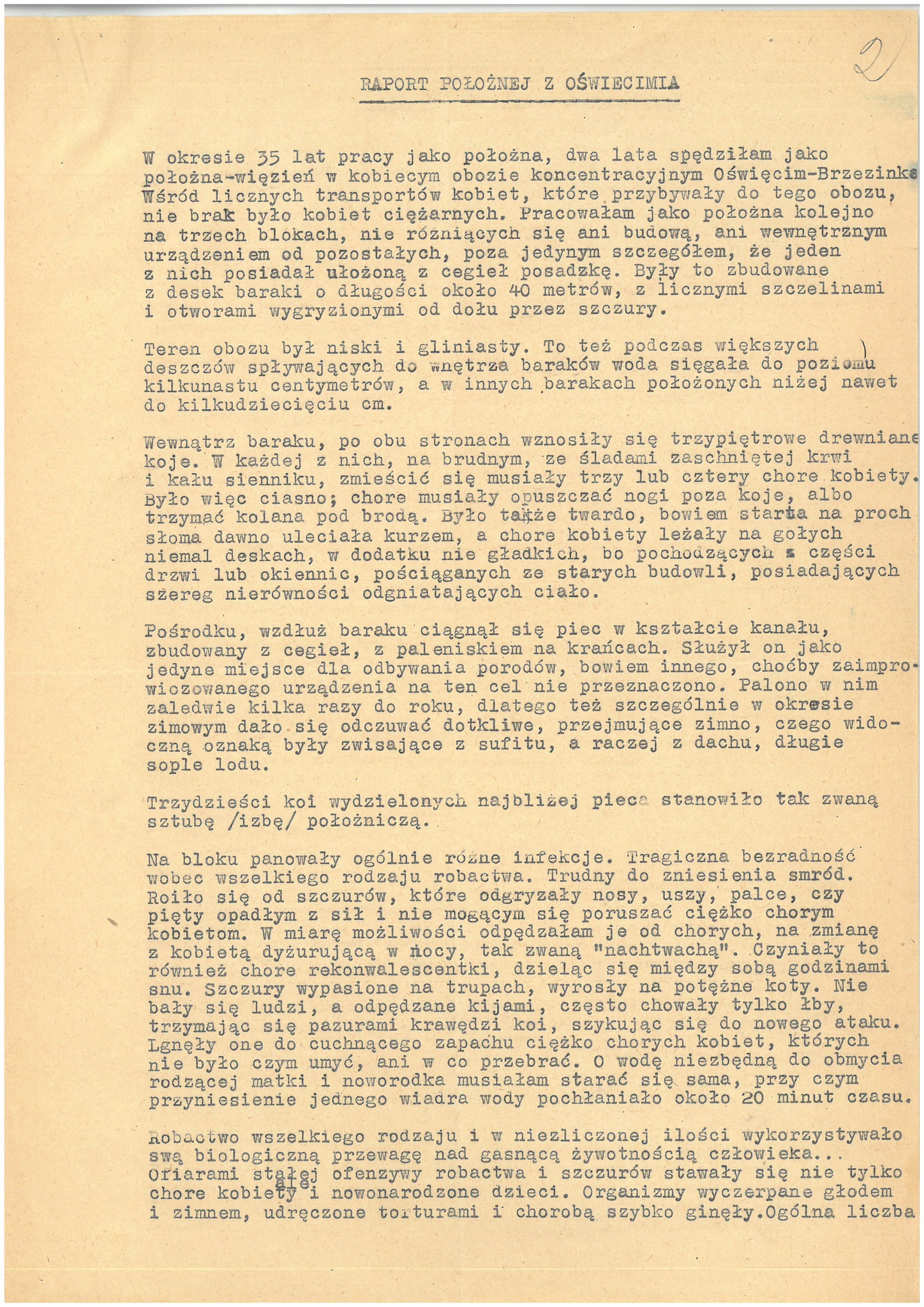 „Raport położnej z Oświęcimia”, wygłoszony jako referat przez Stanisławę Leszczyńską na uroczystości jubileuszu pracy położnych w Łodzi (z zasobu IPN)