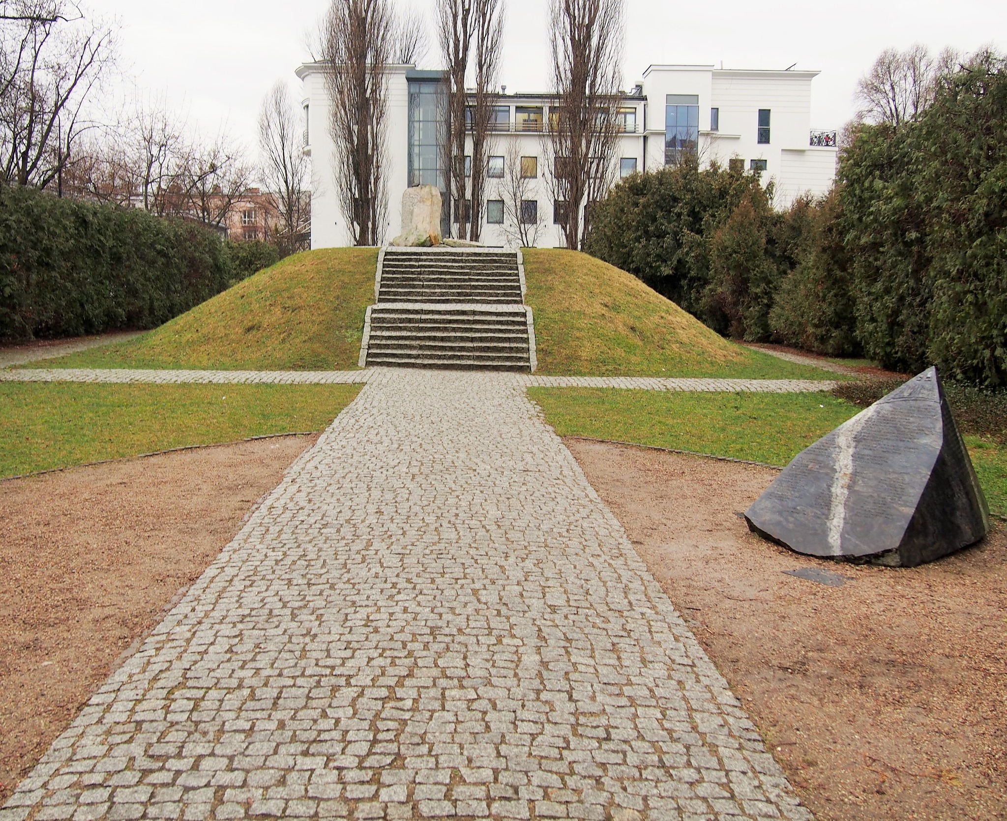 „Kopiec powstańców warszawskiego getta, usypany z gruzów ulicy Miłej, przed wojną jednej z najruchliwszych ulic żydowskiej Warszawy. Tu, w ruinach bunkra przy Miłej 18, spoczywają członkowie sztabu Żydowskiej Organizacji Bojowej, wśród nich Mordechaj Anielewicz, dowódca powstania, inni bojowcy, a także osoby cywilne. 8 maja, po trzech tygodniach walki, otoczeni przez hitlerowców, zginęli lub odebrali sobie życie nie chcąc ginąć z ręki wroga. W getcie wybudowano kilkaset bunkrów. Wykryte i zniszczone stały się mogiłami. Chociaż nie ocaliły swoich mieszkańców są symbolem woli życia Żydów Warszawy. Bunkier przy Miłej 18 był największy w getcie. Poniosło w nim śmierć ponad stu bojowców. Tylko niektórzy znani są z imienia i nazwiska. Tu spoczywają w miejscu swojej śmierci na znak, że cała ziemia jest ich grobem”.
