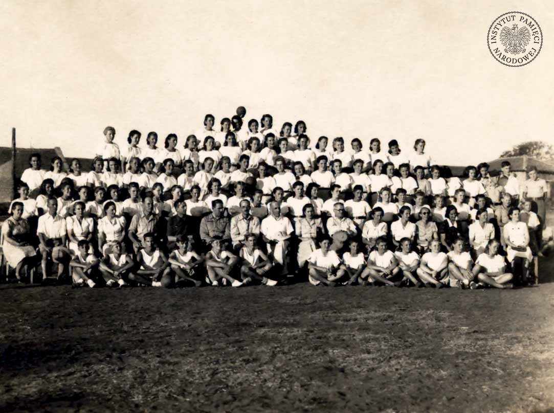 Wizytacja abp. Henryka Doeringa w parafii pw. św. Andrzeja Boboli w Osiedlu Polskim w Valivade. Na zdjęciu widoczni są: ks. Jan Przybysz (pierwszy od lewej), Zdzisław Żerebecki (trzeci od lewej), Michał Goławski (piąty od prawej) i Władysław Jagiełłowicz (trzeci od prawej), 1944 r. (fot. z zasobu IPN)