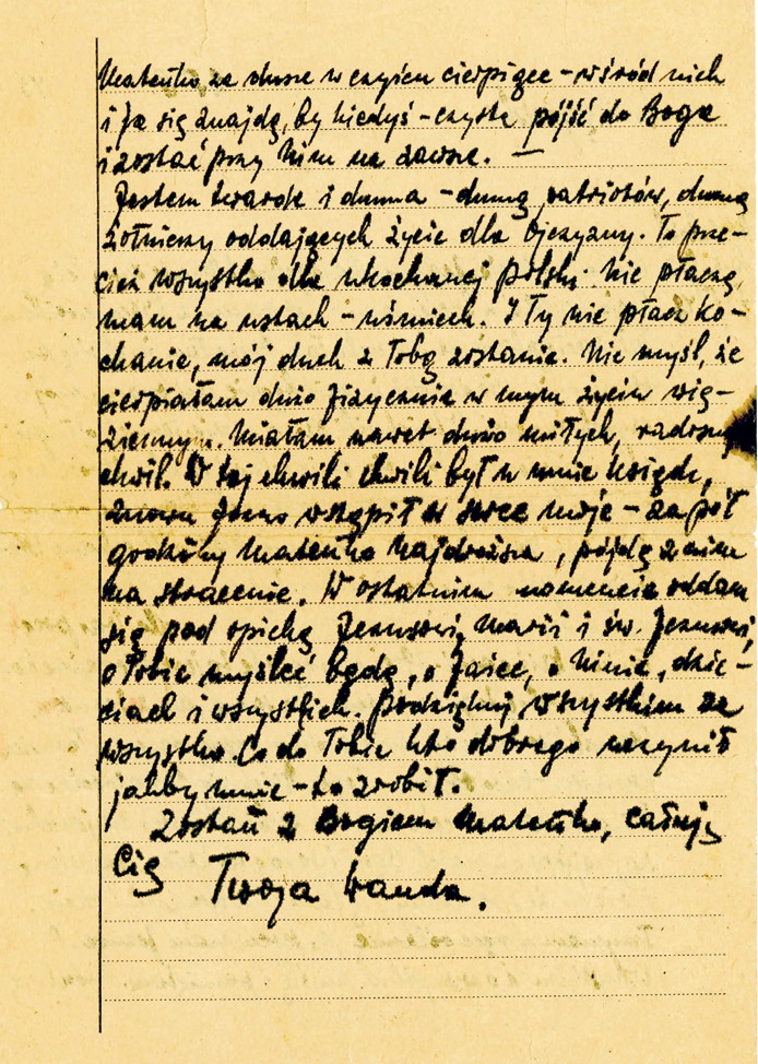 Jednak szybko się dowiedziała, że Niemcy zainteresowali się nią jedynie ze względu na jej siostrę Wandę. 24 czerwca 1942 r. ponownie przewieziono ją na Pawiak, gdzie więzieni byli także jej brat i bratowa.