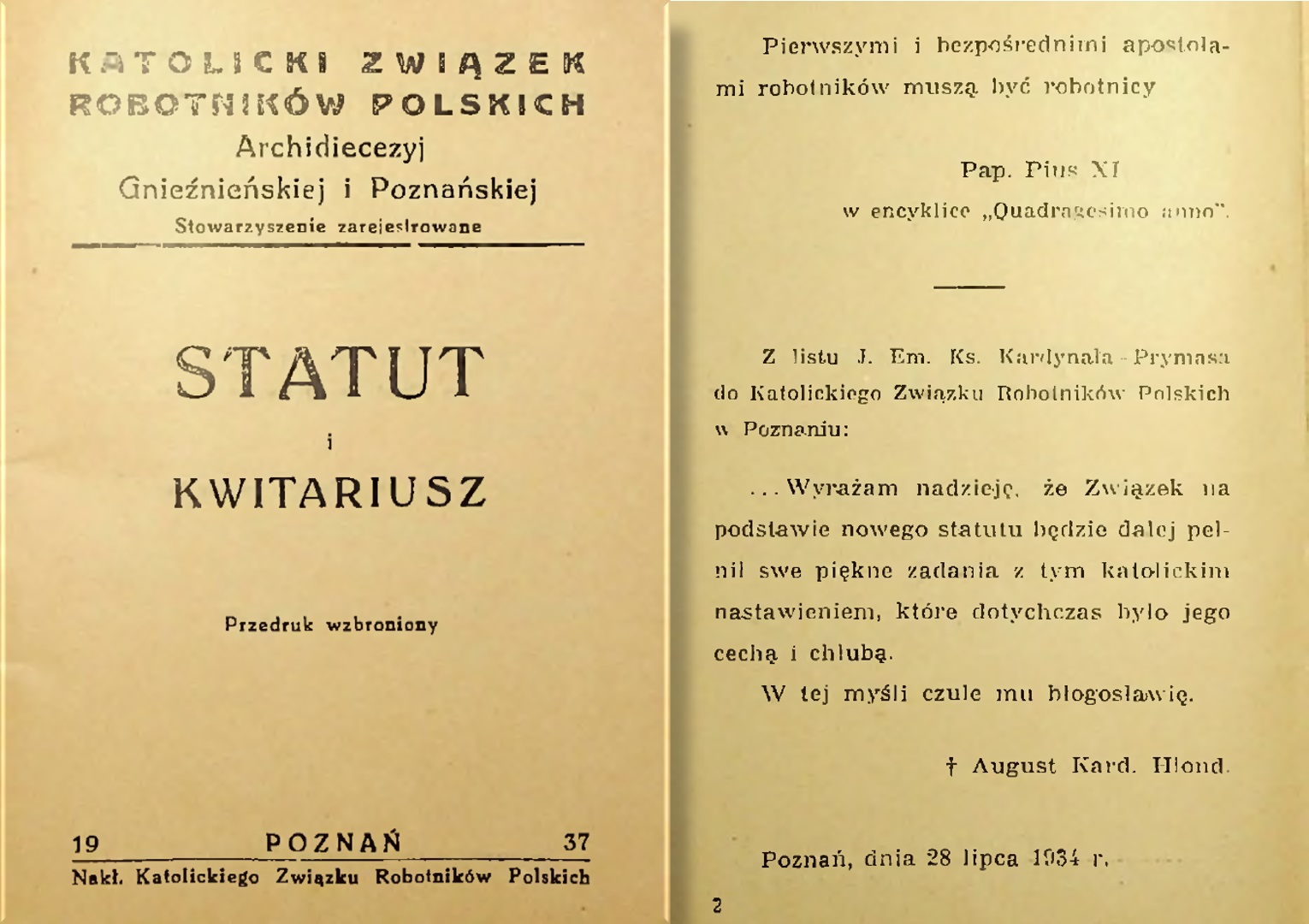 Dla szerszego kontekstu warto poznać atmosferę panującą w tym okresie w archidiecezji gnieźnieńskiej i poznańskiej w środowisku robotniczym. Przybliża ją poniższy tekst, który zachował się w aktach Katolickiego Związku Robotników Polskich Archidiecezji Gnieźnieńskiej i Poznańskiej w Archiwum Archidiecezjalnym w Poznaniu.