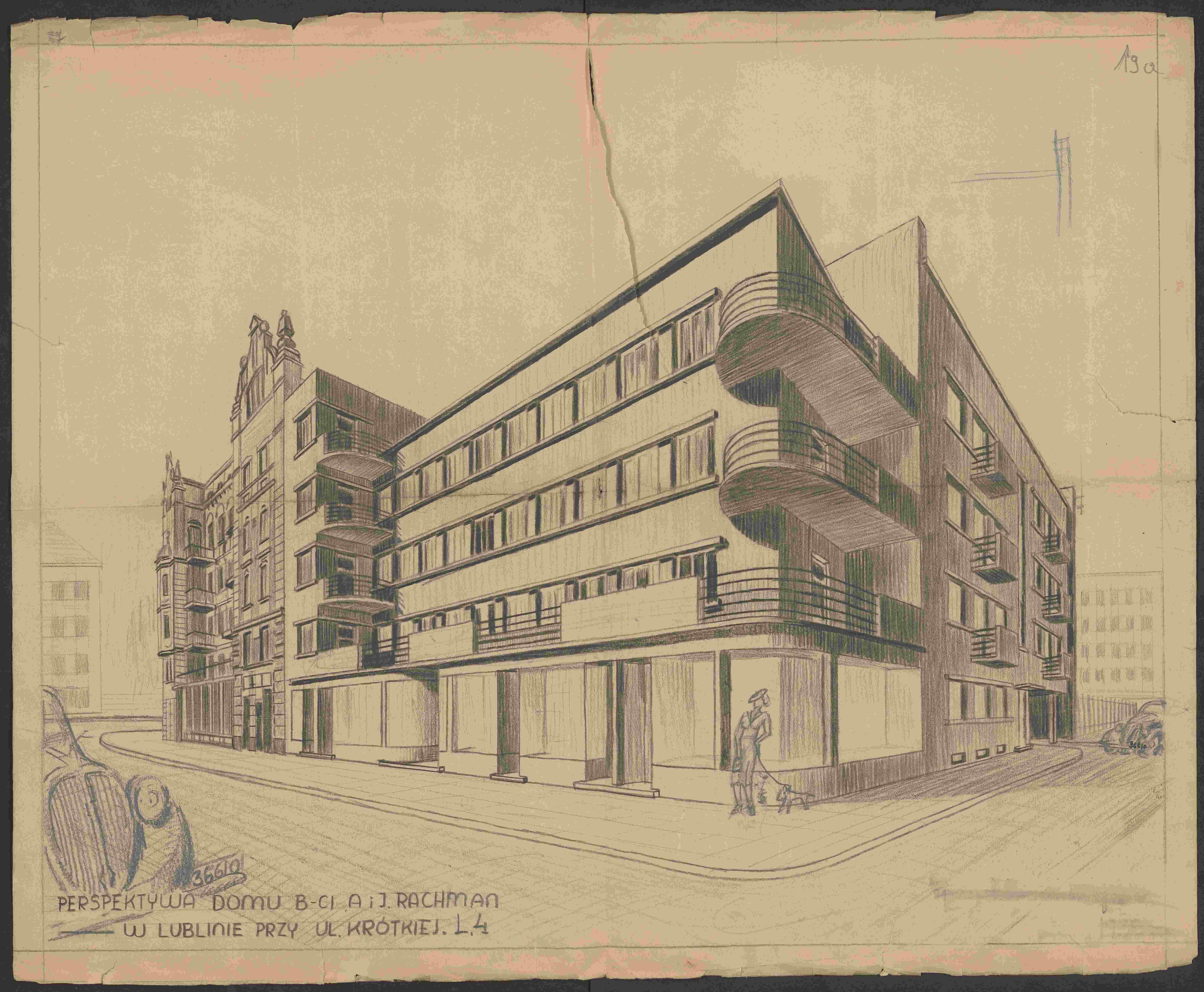 Czynszową kamienicę na rogu ul. Krótkiej 4 i Jasnej 8 dla braci Aarona Josefa i Jankiela Rachmanów zaprojektował w 1938 r. inżynier Henryk Bekker (w czasie wojny przewodniczący lubelskiego Judenratu)2. Na swoim koncie miał ponad dwadzieścia obiektów mieszkalnych i przemysłowych w Lublinie i innych miejscowościach regionu. Wykonywał je głównie na zlecenie żydowskich inwestorów. Mieszkania na Krótkiej 4 budowano pod wynajem. Na parterze przewidziano pomieszczenia dla sklepów (tak jest też dzisiaj), w piwnicach, poza standardowymi rozwiązaniami takimi jak pralnia, pomyślano o schronie.