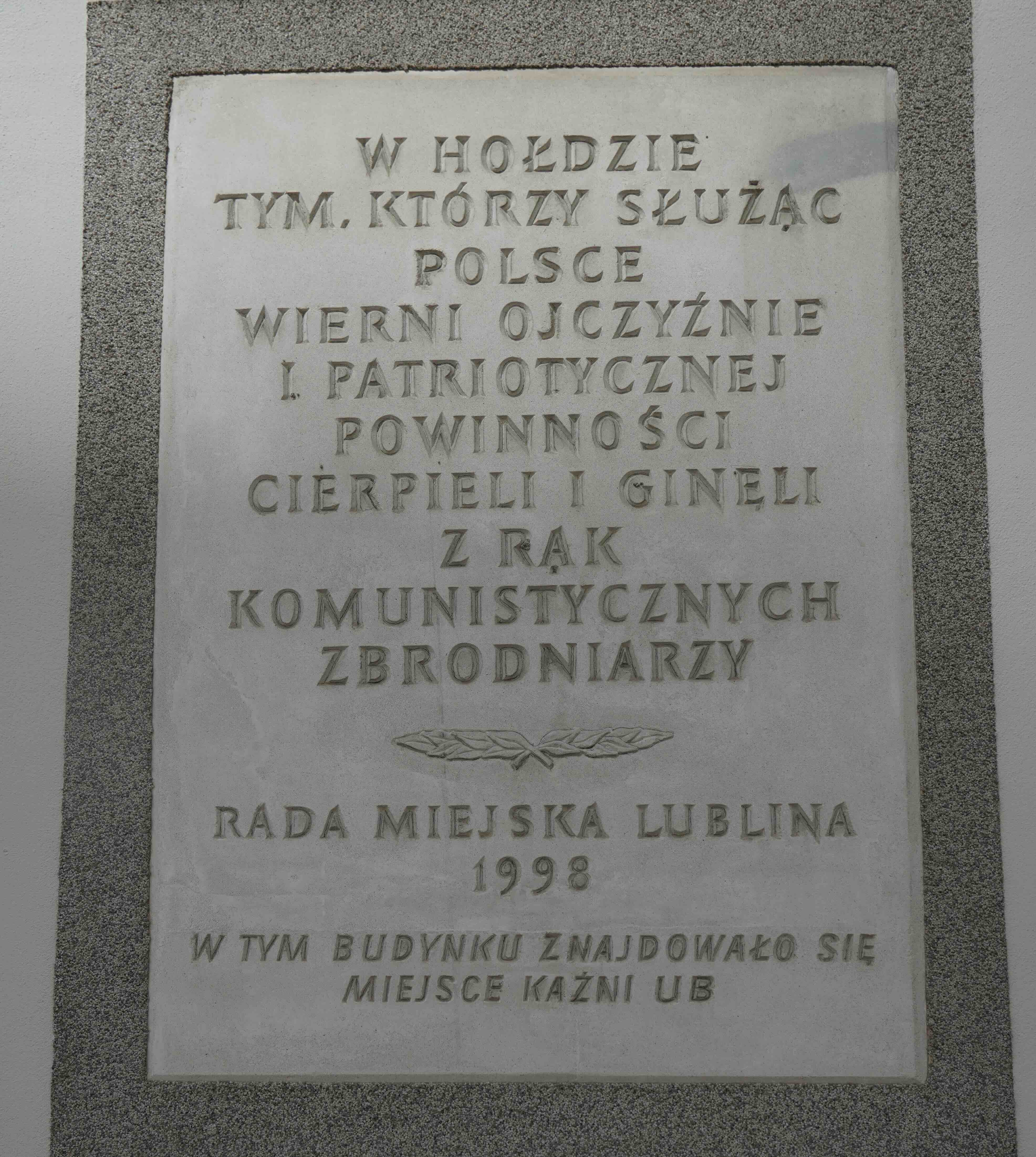 Powojenną historię budynku przy ul. Krótkiej 4 przypomina tablica wbudowana w 1998 r. przez Radę Miejską Lublina. Upamiętnia ona wszystkich, którzy „cierpieli i ginęli” z rąk funkcjonariuszy komunistycznego aparatu represji.