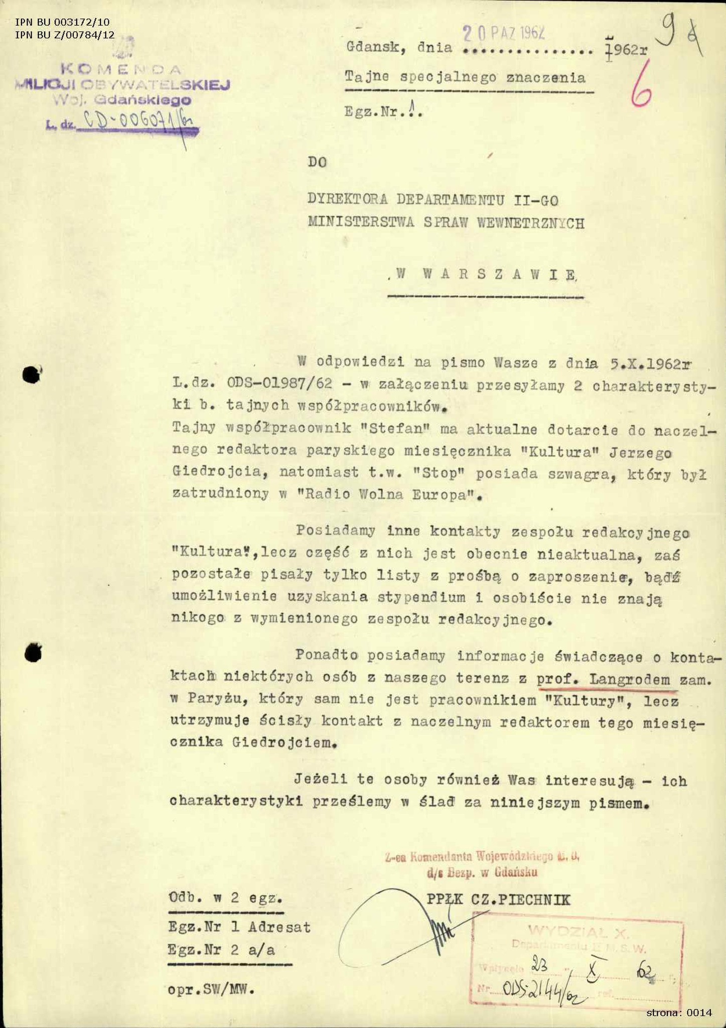W Archiwum IPN zachowały się liczne ślady pokazujące, jaki wpływ miała giedroyciowska „Kultura” na polskich obywateli oraz jak była postrzegana przez Służbę Bezpieczeństwa PRL.