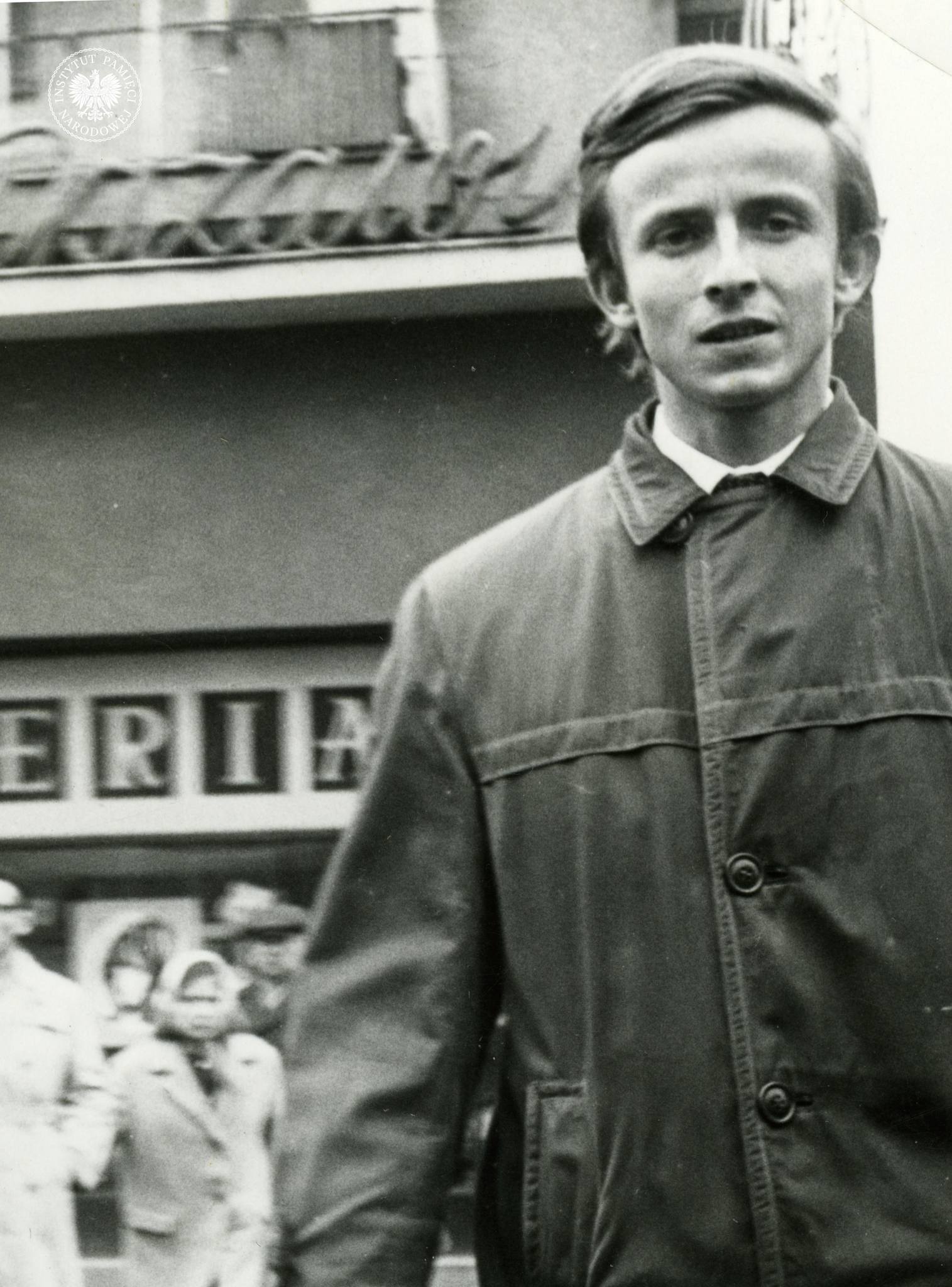 Jan Krzysztof Kelus „Mały”. Warszawa (prawdopodobnie ul. Żurawia róg ul. Brackiej), 6 IV 1968 r. (fot. z zasobu IPN)