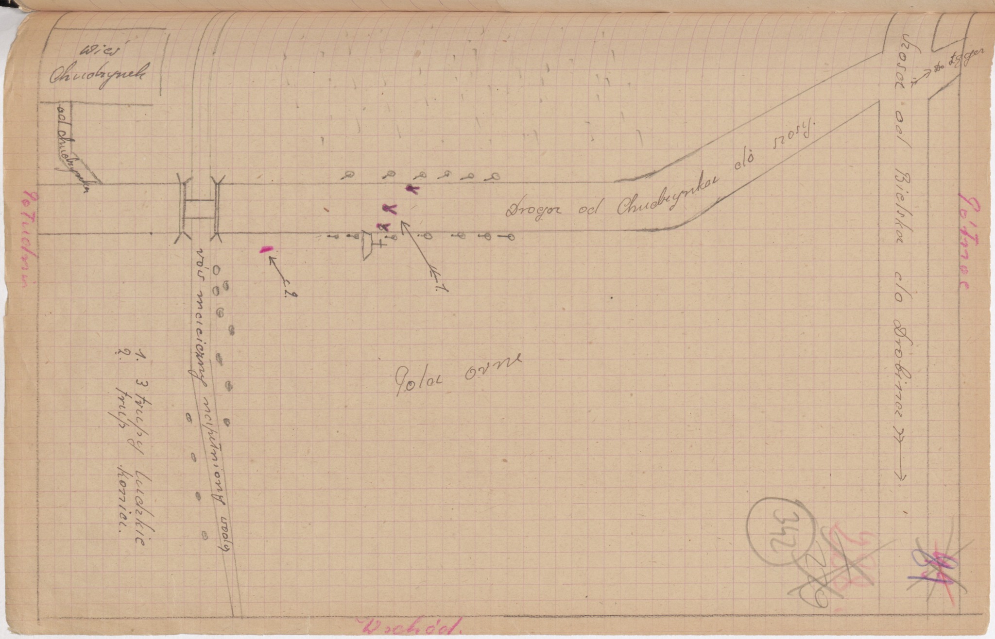 Szkic miejsca wykonania wyroku na Władysławie Rypińskim. Akcję 11 października 1947 r. przeprowadzili żołnierze Wojska Polskiego z Ruchu Oporu Armii Krajowej, kilometr za wsią Chudzynek (około 5 km od Łęgu Probostwa). Z akt śledztwa UB przeciwko żołnierzom Wojska Polskiego z 11. Grupy Operacyjnej NSZ (z zasobu AIPN)