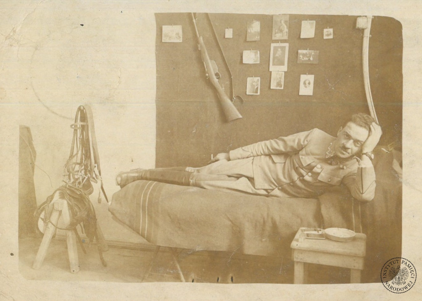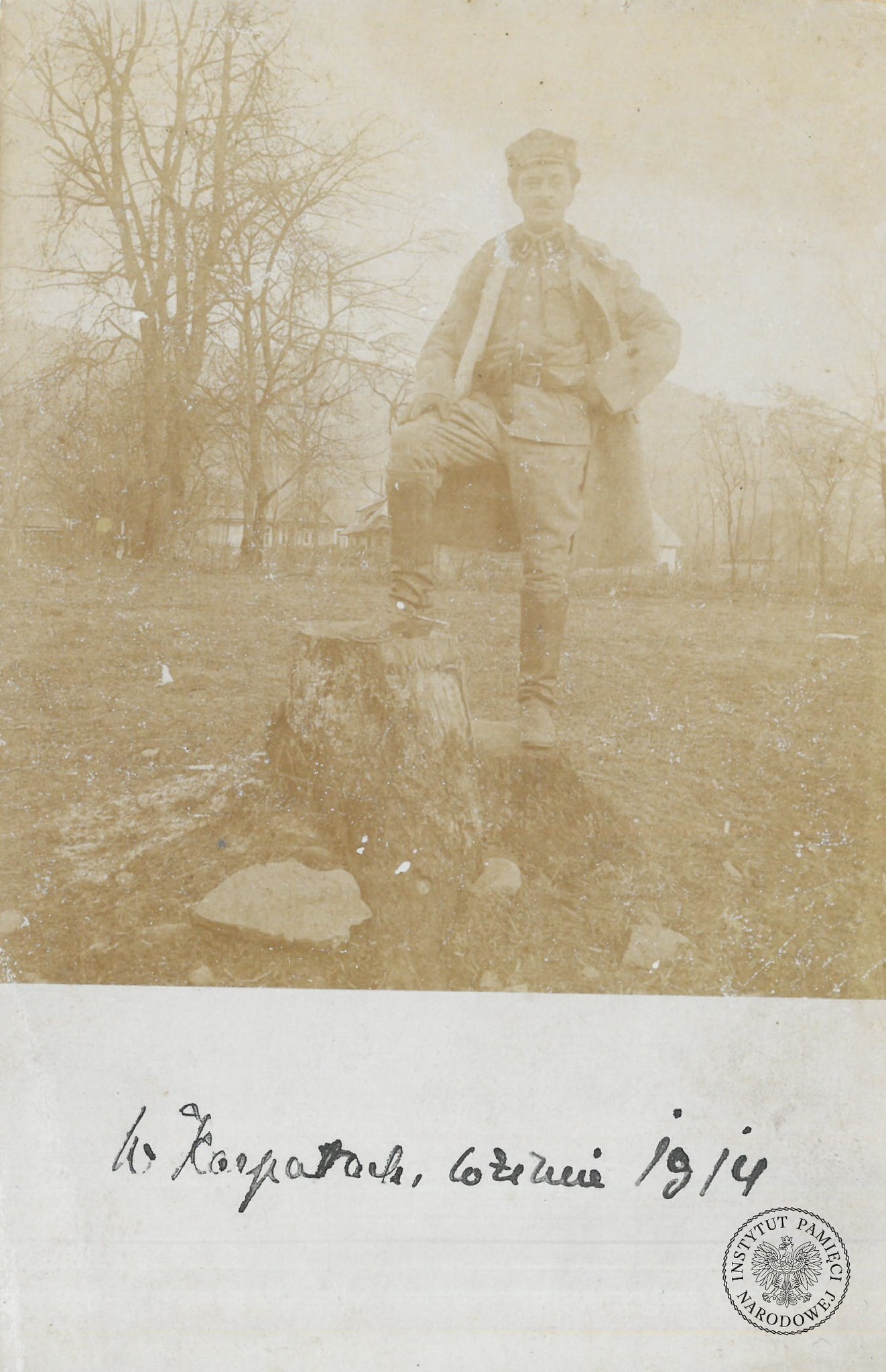 Maksymilian Landau, zdjęcie z okresu służby w 1. Pułku Artylerii Legionów Polskich, przesłana do Piotra Kowaliszyna (prawdopodobnie brata Józefy) z Ciechanowa, 12 V 1917 r. (fot. z zasobu IPN, dar prywatny Andrzeja Czuka)