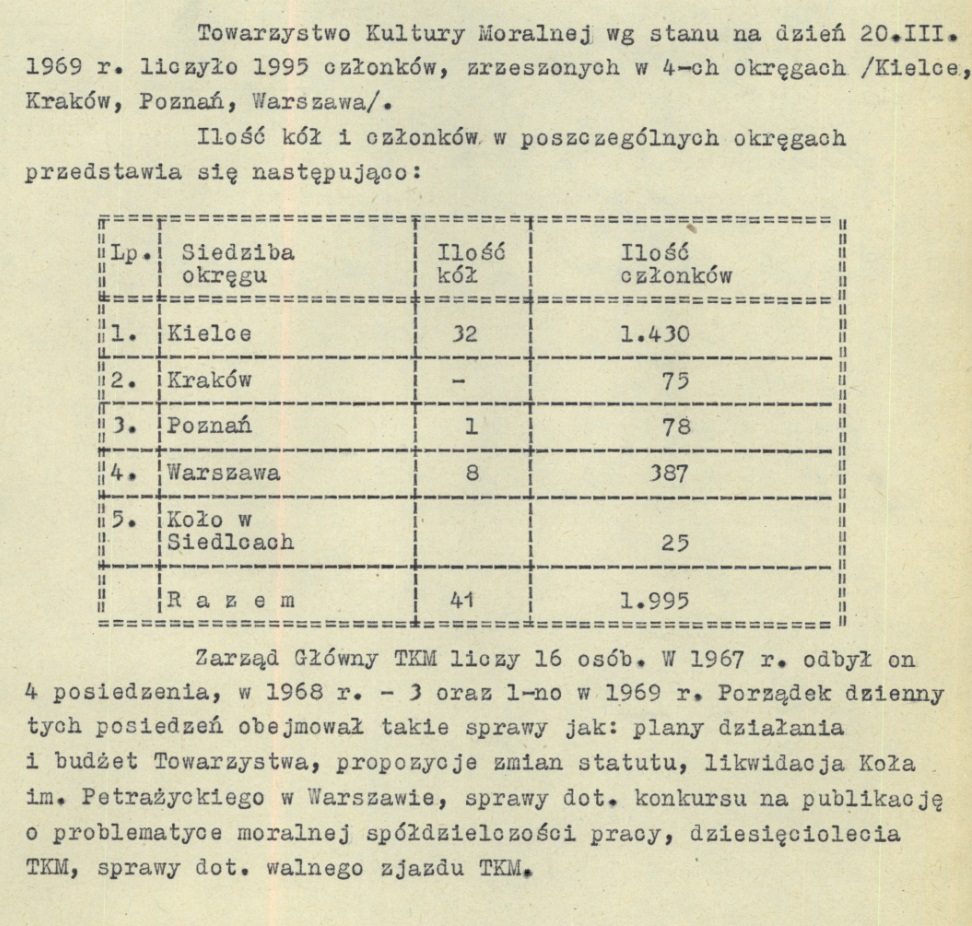 11 AAN, KC PZPR, 237/VIII-1122, Wydział Propagandy i Agitacji, Sektor Organizacji Masowych, Notatka o działalności Towarzystwa Kultury Moralnej, marzec 1970 r., k. 12.