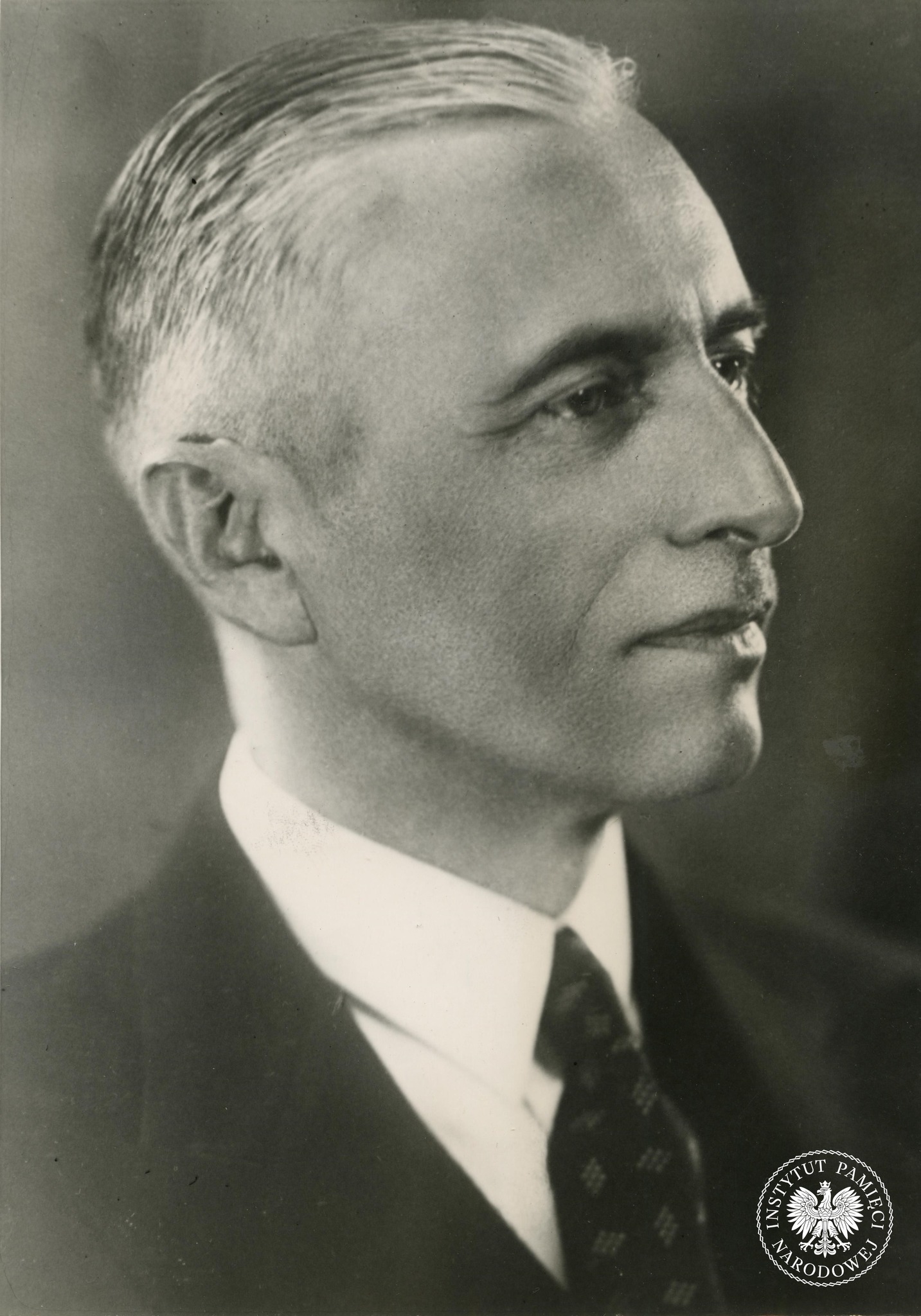 Prezydent Władysław Raczkiewicz. Podpis na odwrocie (w języku angielskim) głosi: „[…] wykonany ostatnio portret Władysława Raczkiewicza, byłego marszałka Senatu RP, zaprzysiężonego na prezydenta Polski w nowych władzach [RP] na uchodźstwie powołanych w Paryżu. […] 30 września 1939 r.” (fot. z zasobu AIPN)